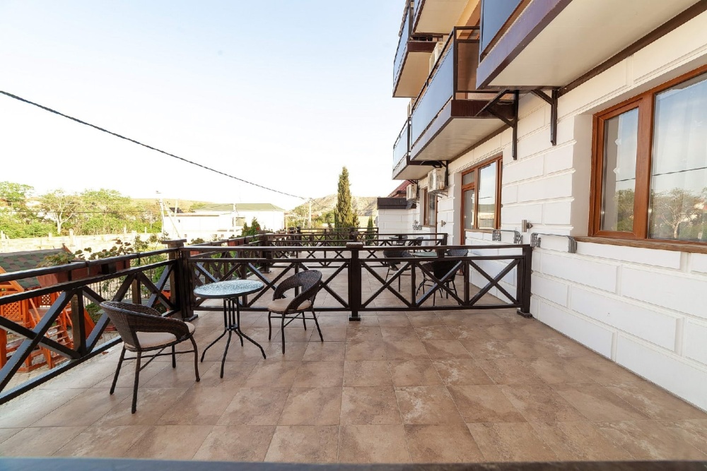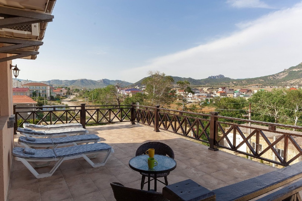 Гостевой дом расположен в тихом и спокойном районе города Судака в районе горы Алчак. До моря — 850.. метров, до аквапарка — 800 метров, дорога ровная, без спусков и подъемов. Расстояние можно пройти за 10-15 минут, спокойной ходьбой. По дороге к морю можно посетить аквапарк, различные кафе и рестораны с домашней и национальной кухней, местный колоритный курортный рынок, киоски и павильоны с потребительскими товарами.