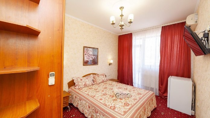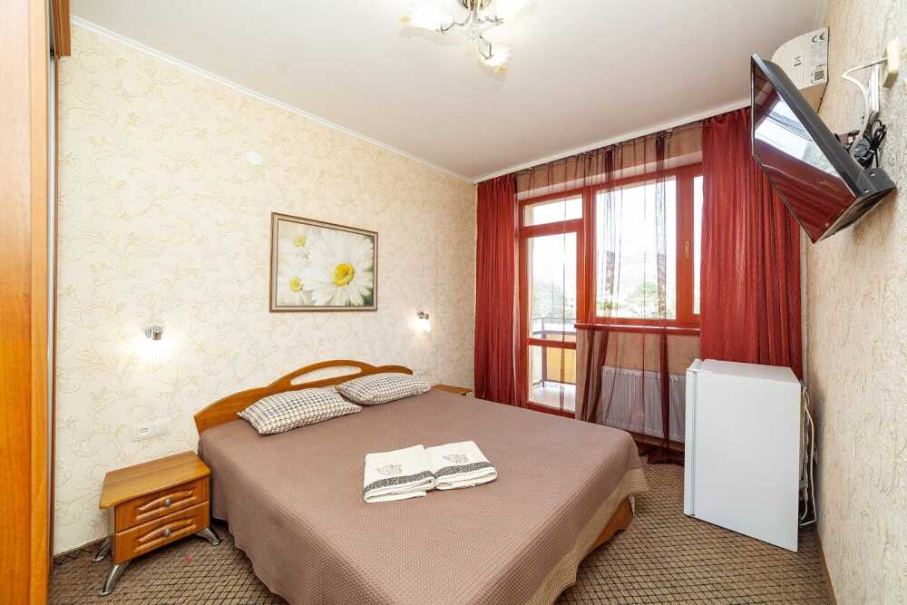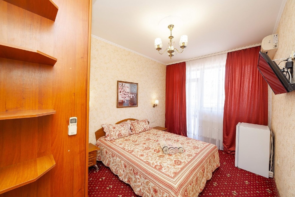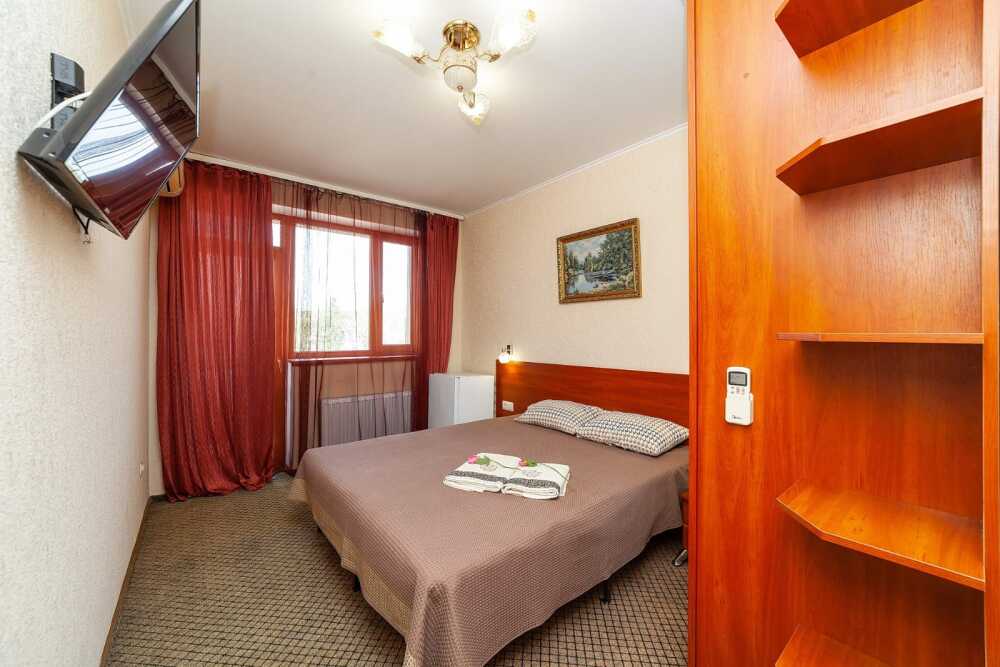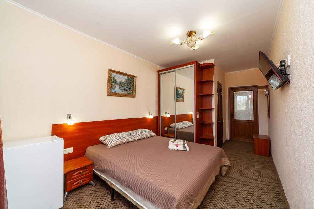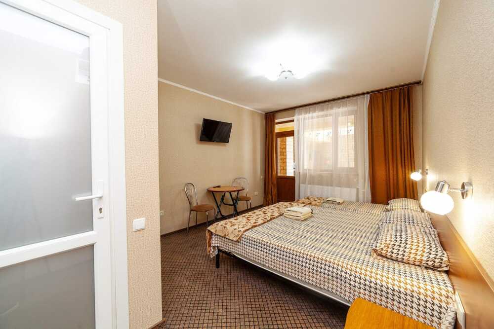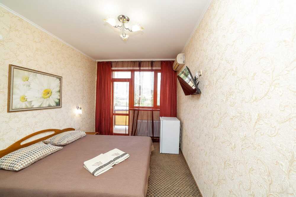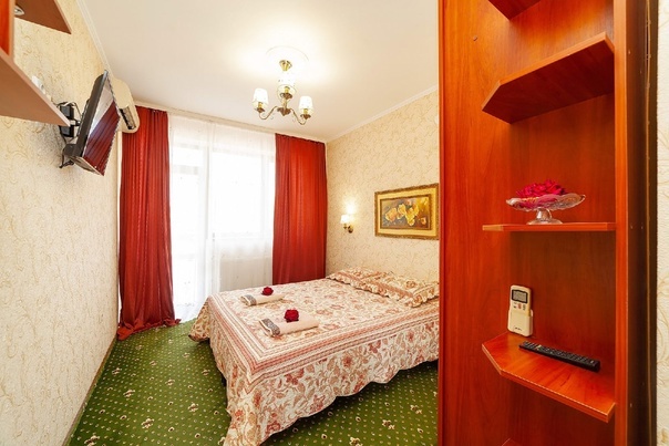 Комната для 2х человек, с отдельным стандартным балконом, площадь от 14 кв.м., санузел в номере, сатиновое постельное белье, махровые полотенца, кровати по наличию мест, шкаф-гардероб с большим зеркалом, кондиционер, холодильник, плазменный телевизор, кабельные каналы, посуда для чая и напитков , разделочная доска, горячая и холодная вода постоянно, информационная папка.