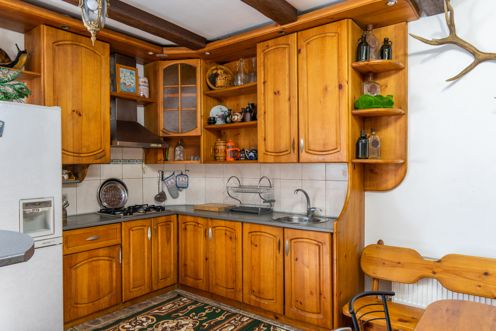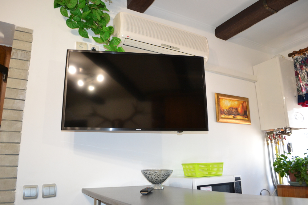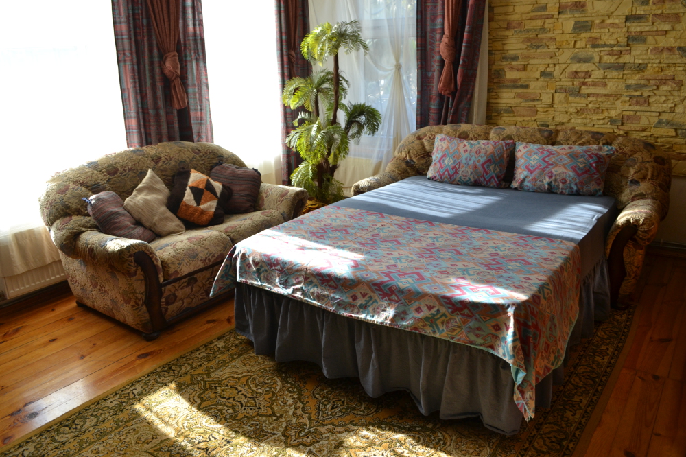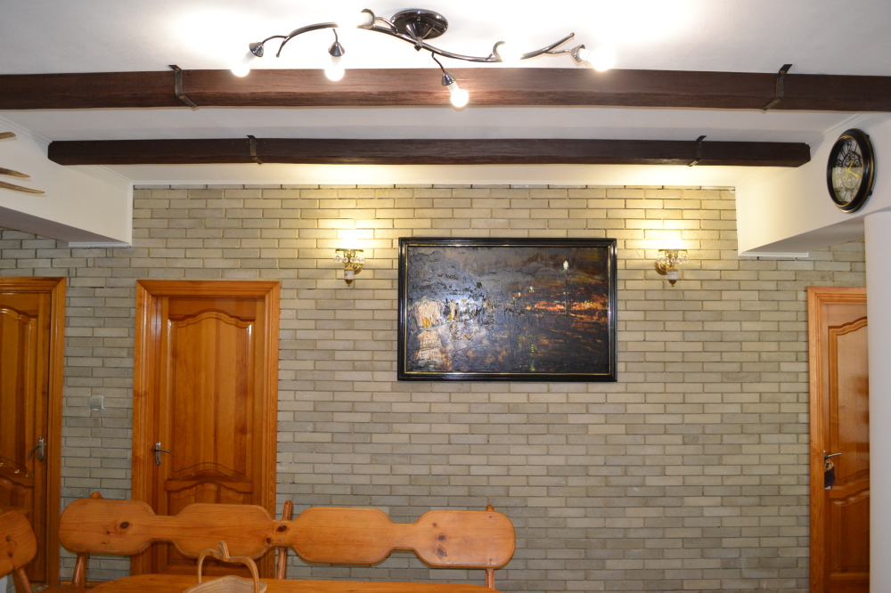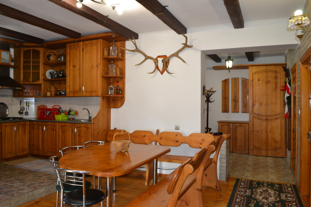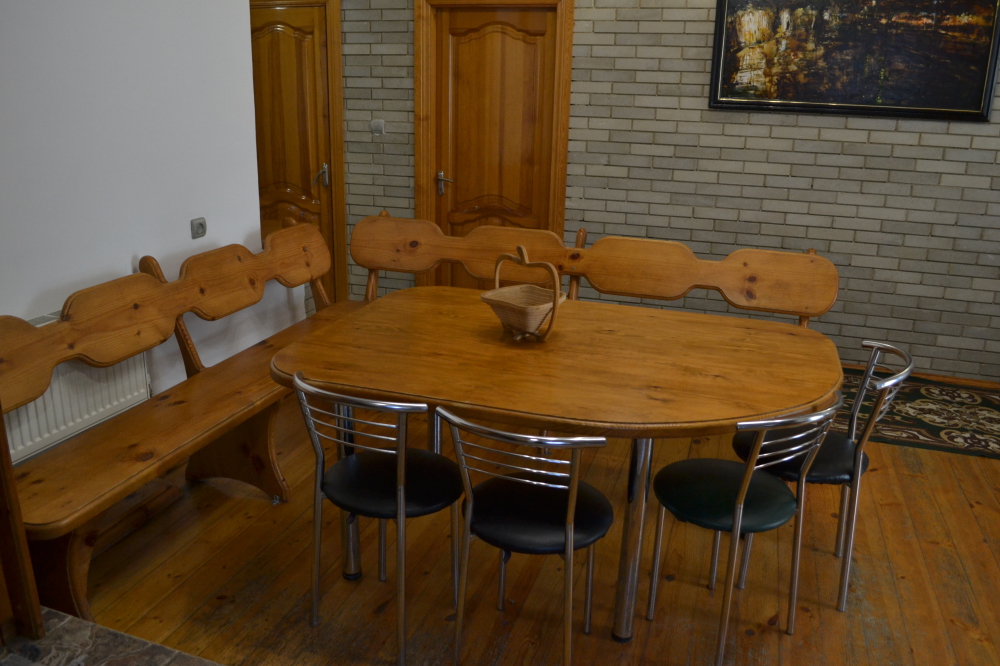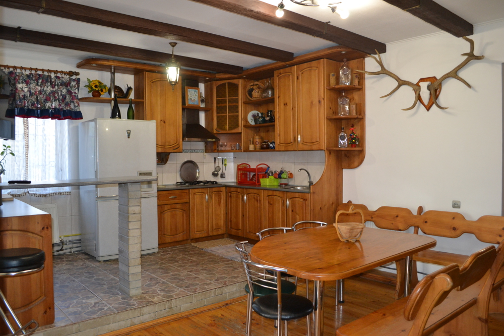 В доме хороший дизайн, мебель из массива ручной работы, полы деревянная доска толщиной 5 см, отопление - 2-х контурный котел, кондиционеры, спутниковое TV, Wi-Fi, бытовая техника, необходимая посуда, постельное белье и полотенца. Из-за толстых стен в нём летом прохладно, а зимой тепло.