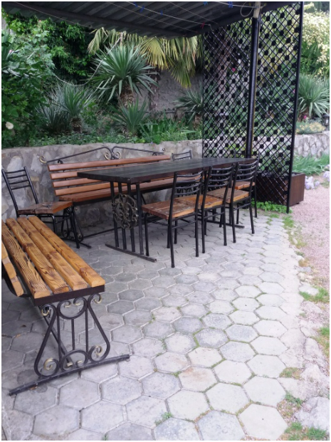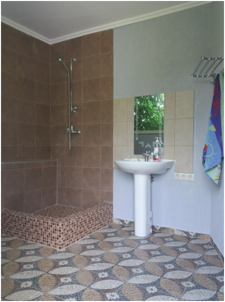 Собственный, закрытый, большой двор 5 соток, с постановкой до 3-х машин. На территории двора в Вашем распоряжении плавательный бассейн: о.п. 30 кв.м., глубина - 2 м, детская зона - 1,5 метра. Бассейн с кристально чистой водой, которая автоматически фильтруется через кварцевый песок 6 часов в день (3 часа утром, 3 часа вечером), каждые 3 дня производится чистка бассейна с помощью специального пылесоса, после чего снимается проба воды и добавляются по мере необходимости, альгицид, PH- и Cl, препятствующие развитию грибка при температуре свыше +25t. Ночью, по желанию, можно включить подсветку бассейна. Украшают двор многообразие разновидностей пальм и цветущие растения, а также со двора открывается вид на Крымские горы и море. Во дворе к Вашим услугам мангал. В вечернее время территория двора полностью освещена.