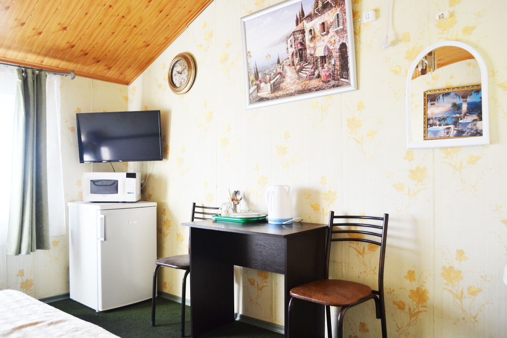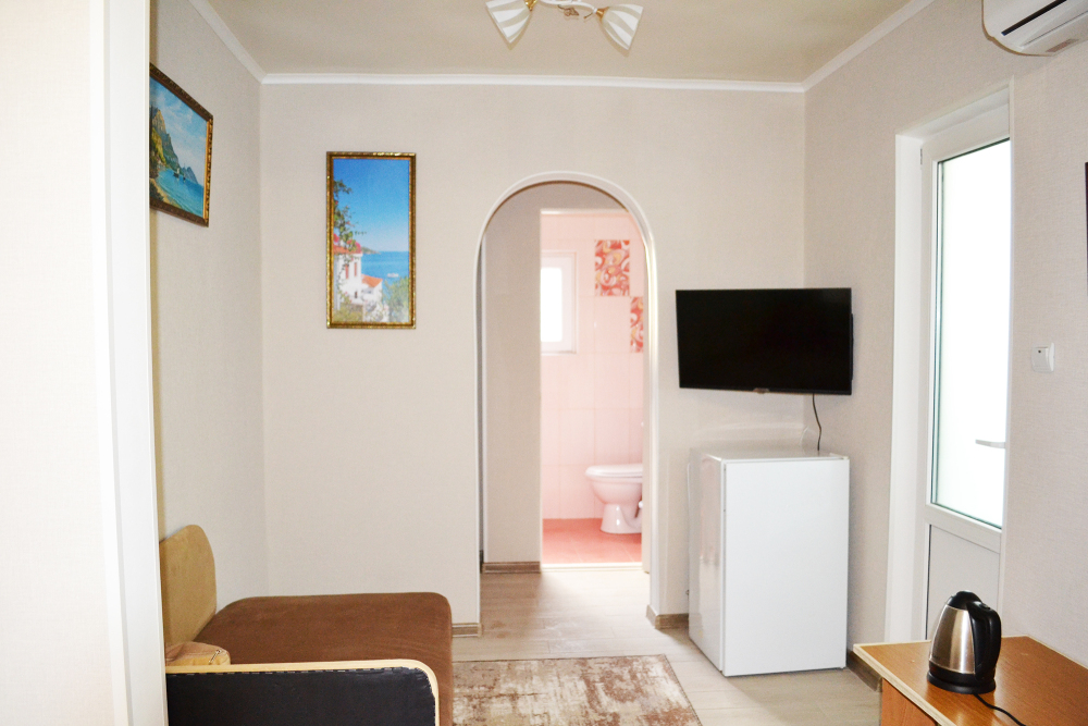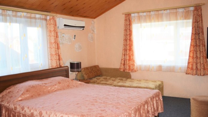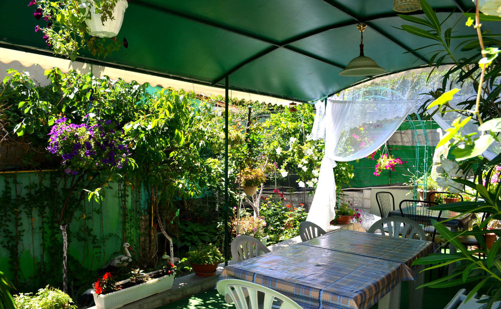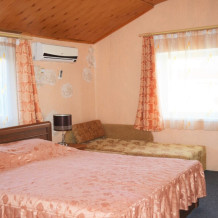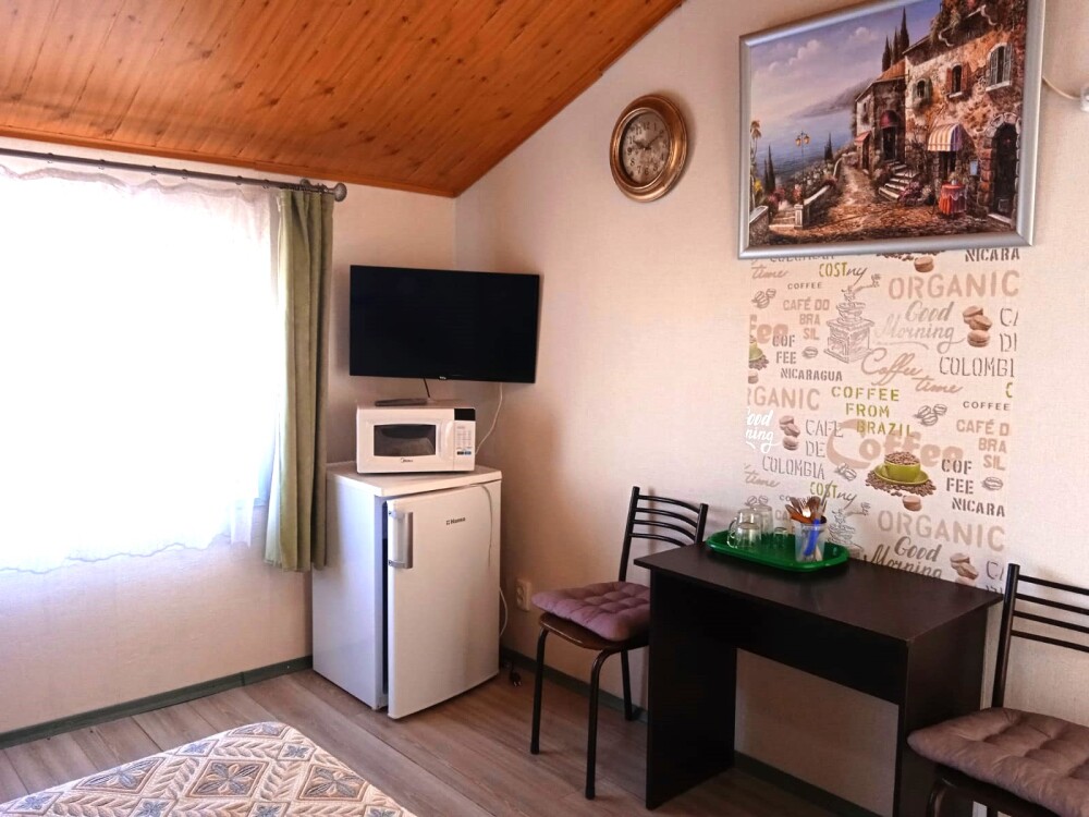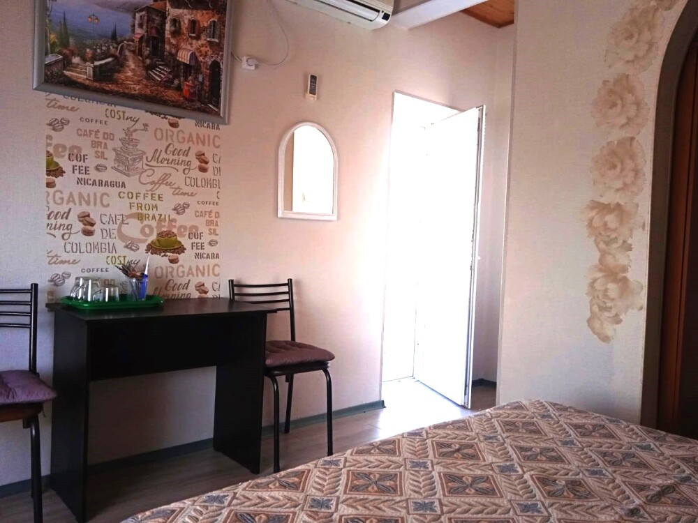 Уютный цветочный дворик с беседкой, мангал, общая кухня, большое пространство для Вашего отдыха, комфортабельные номера с видом на море или на горы. В номерах: санузел (горячая/холодная вода круглосуточно), кондиционер, холодильник, электрочайник, посуда кабельное или цифровое TV, бесплатный Wi-Fi.