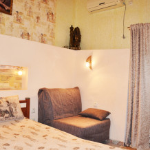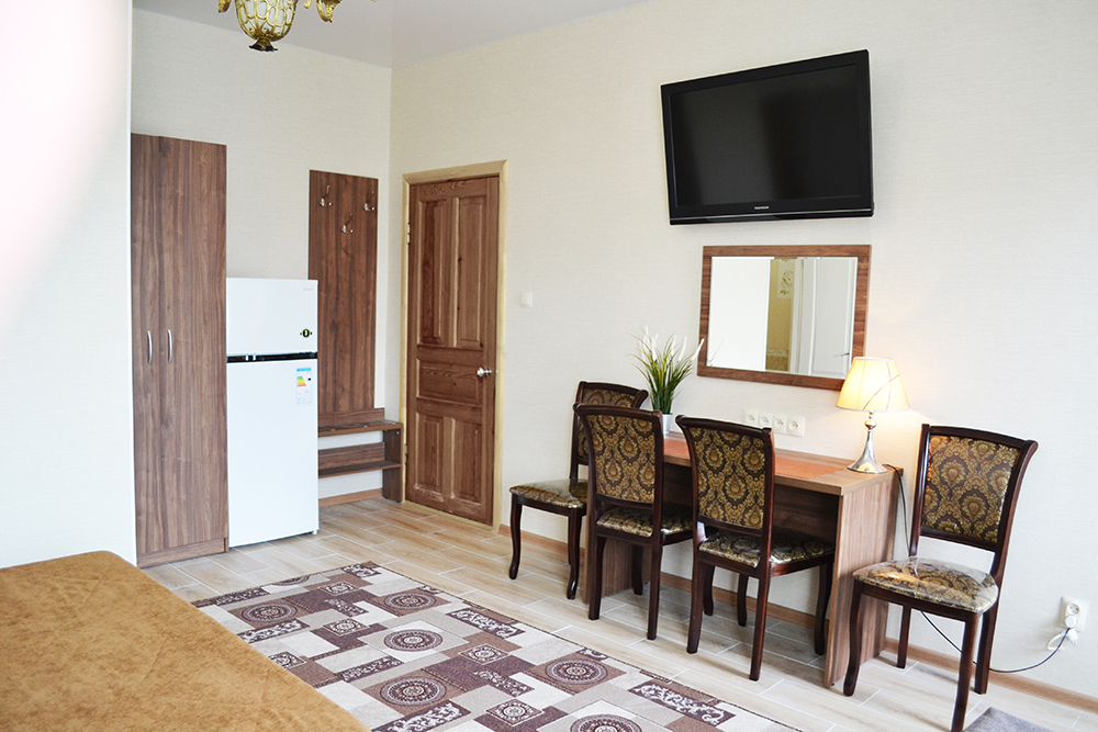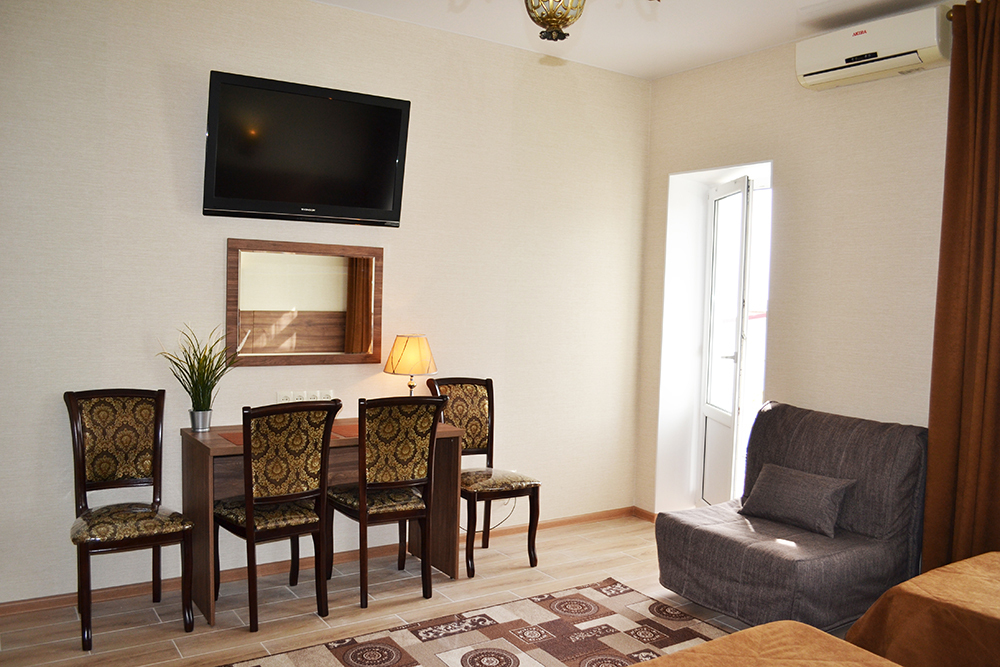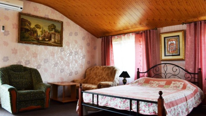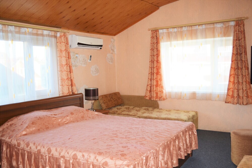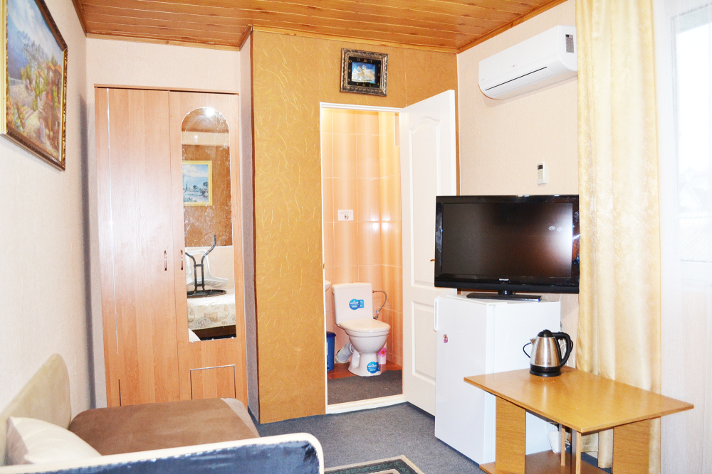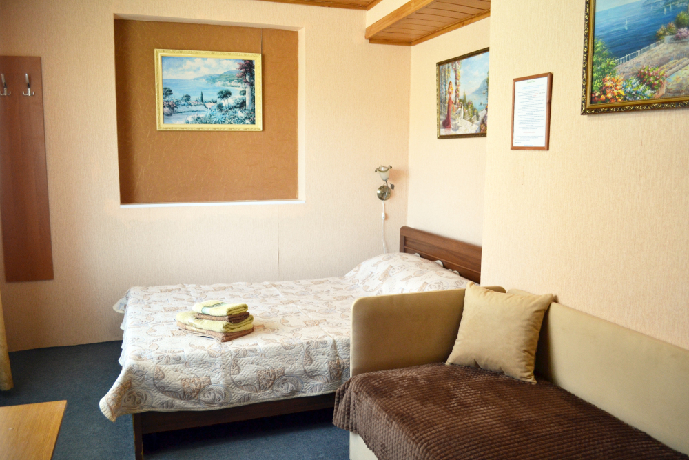 Уютный цветочный дворик с беседкой, мангал, общая кухня, большое пространство для Вашего отдыха, комфортабельные номера с видом на море или на горы. В номерах: санузел (горячая/холодная вода круглосуточно), кондиционер, холодильник, электрочайник, посуда кабельное или цифровое TV, бесплатный Wi-Fi.