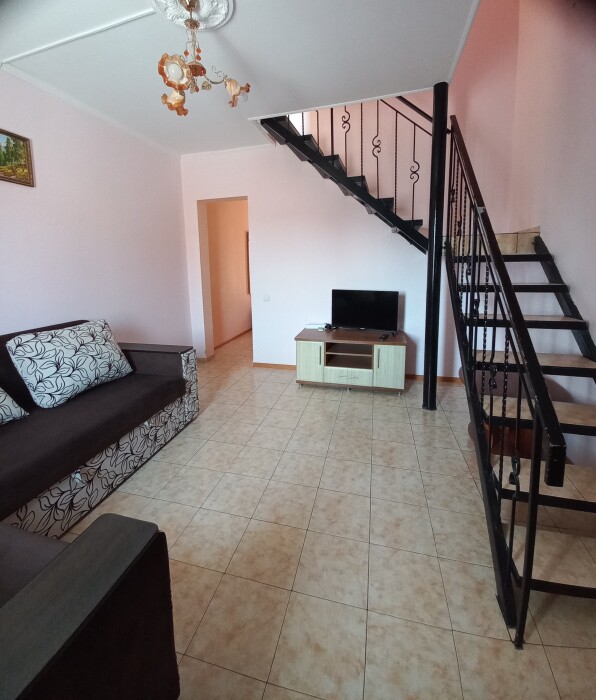 Предлагаю для отдыха трехкомнатный двухуровневый апартамент расположенный на третьем этаже, в кооперативе «Нептун» на Южной Kоce, в 30 км от города Евпатория, от Мирного в 2 км, на caмoм бepегу моря, в дали от горoдcкoгo шумa и суeты в прeкpасном мecтe.