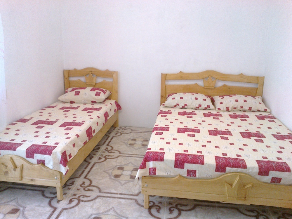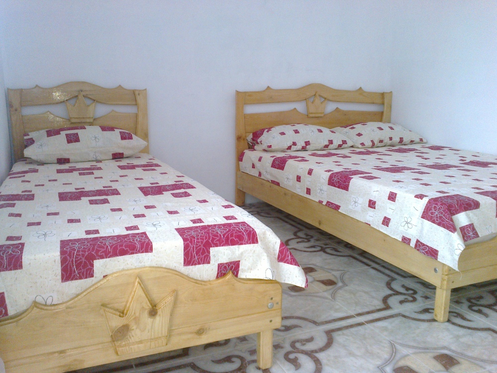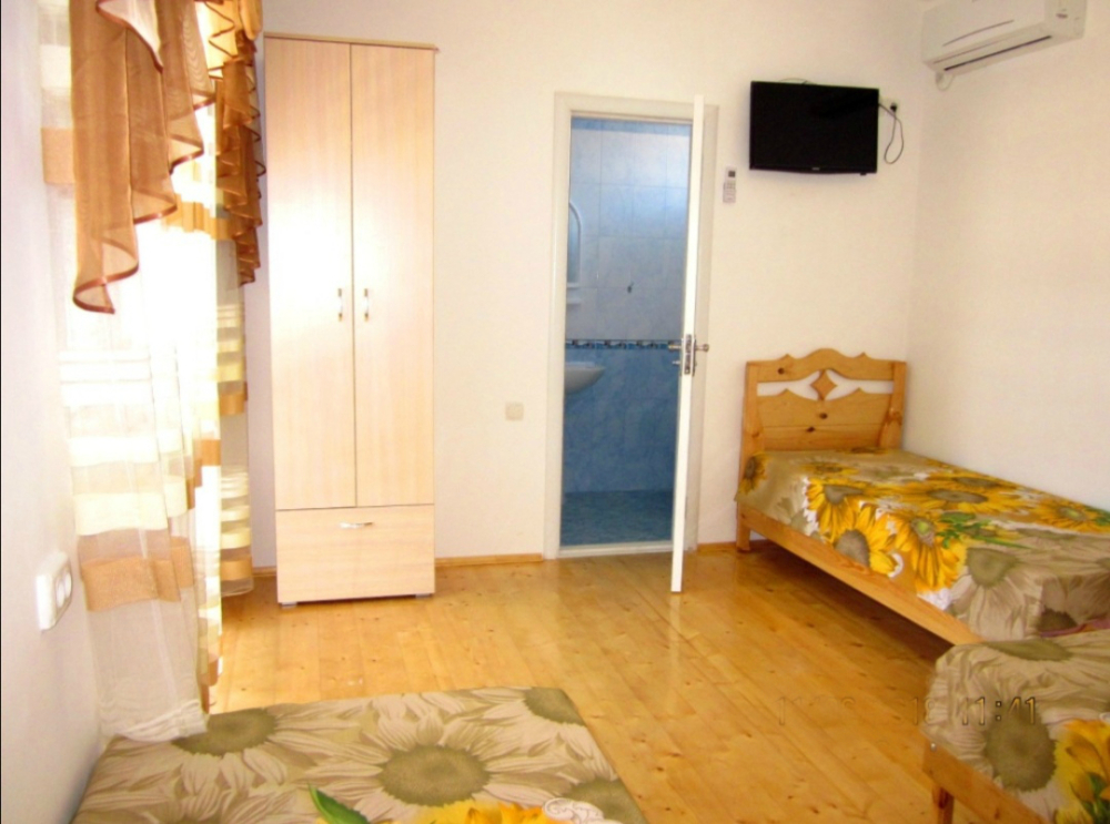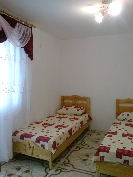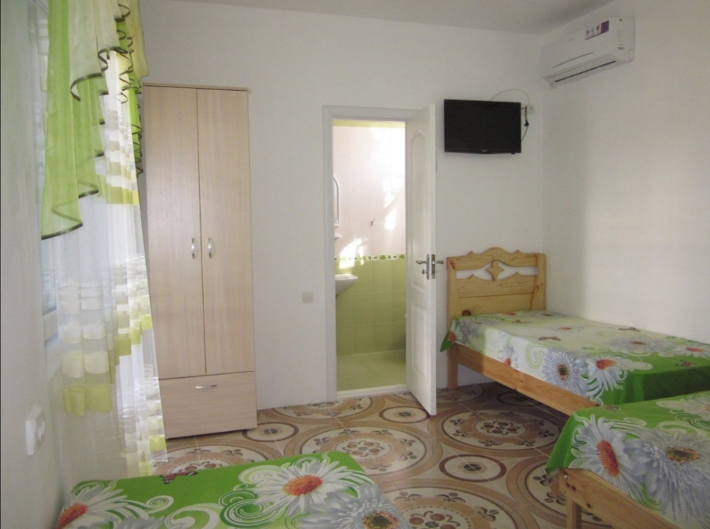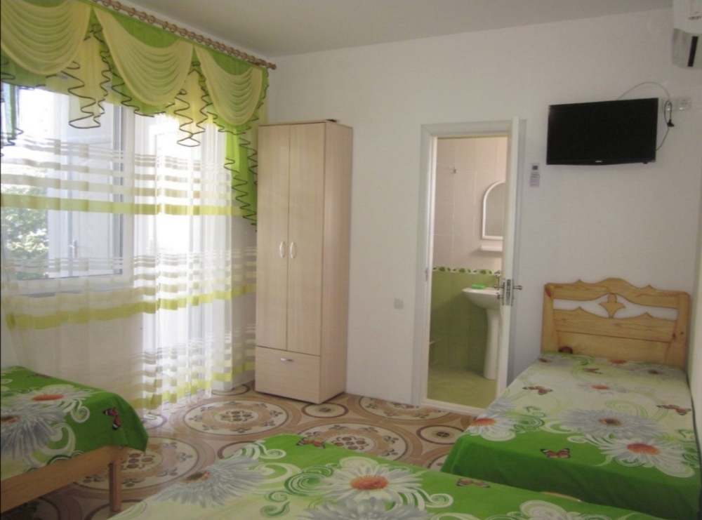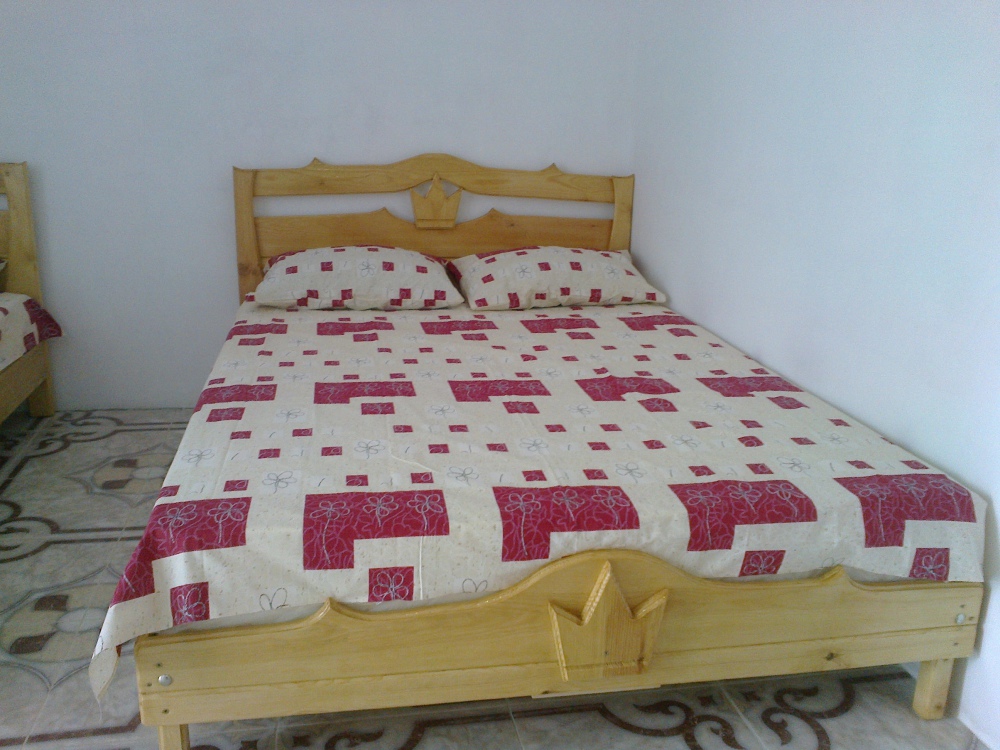 - благоустроенную комнату с кондиционером, телевизором, тремя эксклюзивными кроватями из натурального дерева с ортопедическими матрацами (одна кровать - двуспальная 200*140 и две кровати - односпальных 200*80);