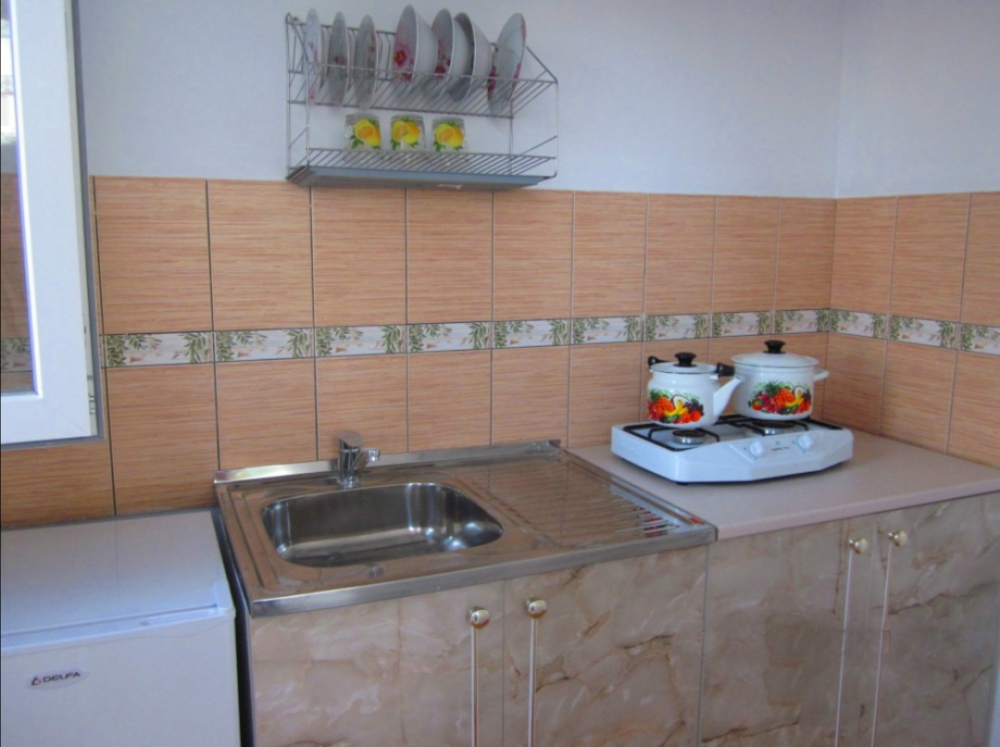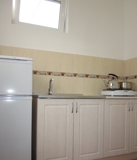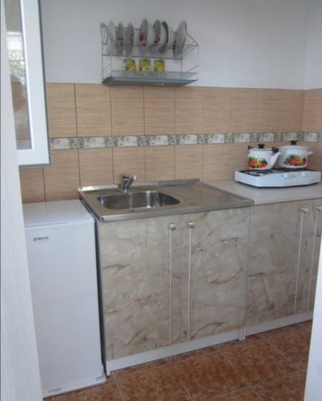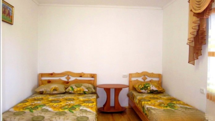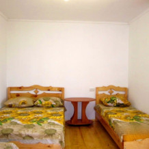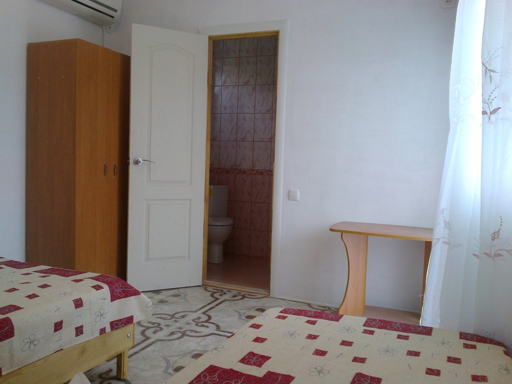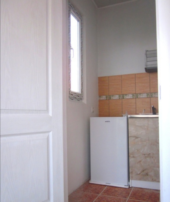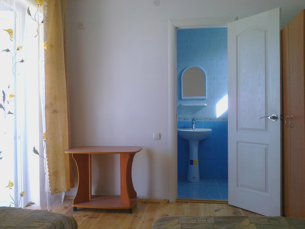 В номере: эксклюзивные кровати из натурального дерева с ортопедическими матрацами двухспальная (200*140) + односпальная (200*80); телевизор, кондиционер; собственная ванная комната с душем, х/г вода постоянно; своя кухня с необходимой посудой, плитой и холодильником; большая терраса, свой персональный вход в номер.