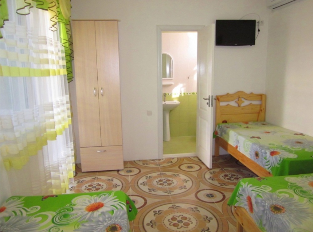 В номере: эксклюзивные кровати из натурального дерева с ортопедическими матрацами двухспальная (200*140) + односпальная (200*80), детская кроватка (по запросу); телевизор, кондиционер; собственная ванная комната с душем, х/г вода постоянно; своя кухня с необходимой посудой, плитой и холодильником; большая терраса, свой персональный вход в номер.