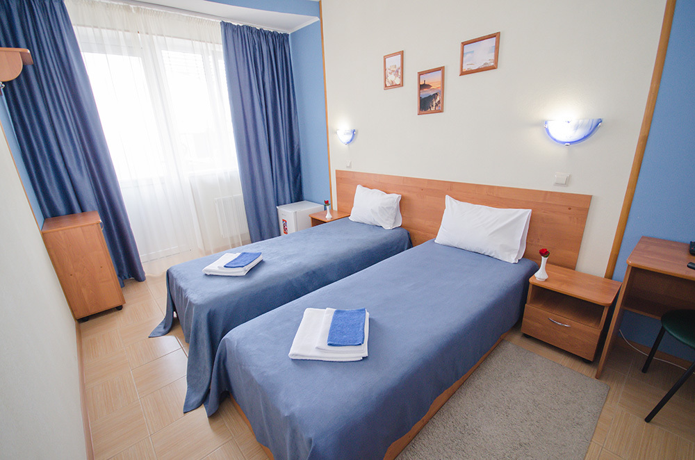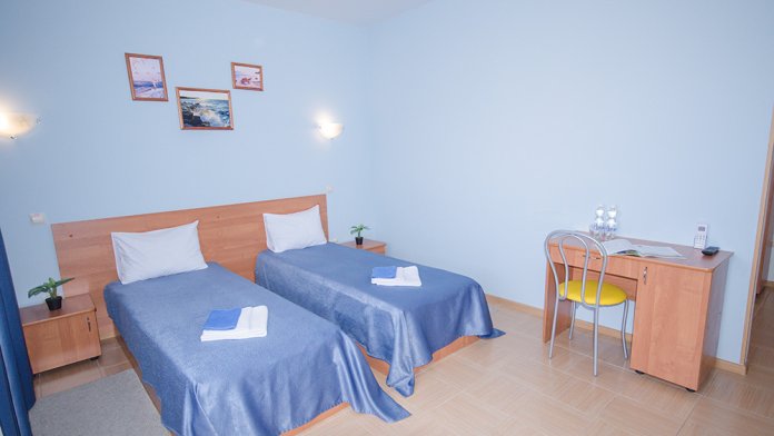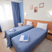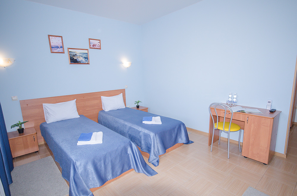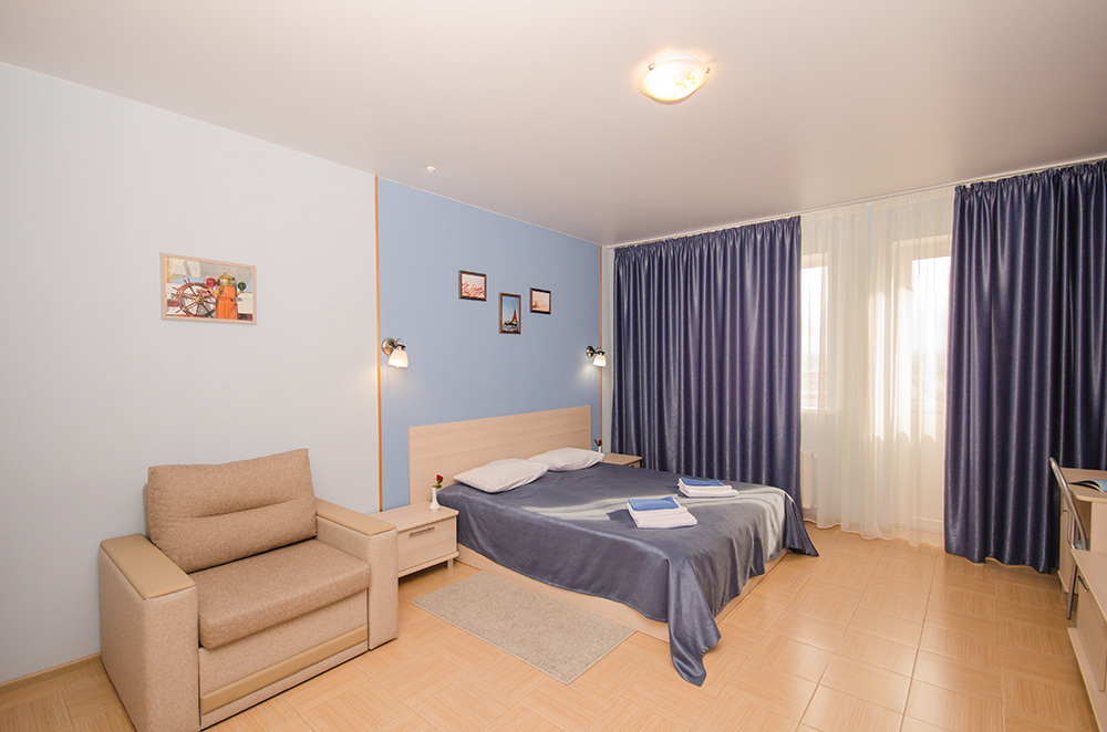 «Капитанский» – 2-х местный номер. Возможность установки одного дополнительного места. Номер расположен на 3 этаже и имеет прекрасный вид на окрестности.