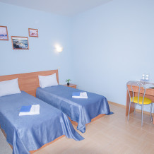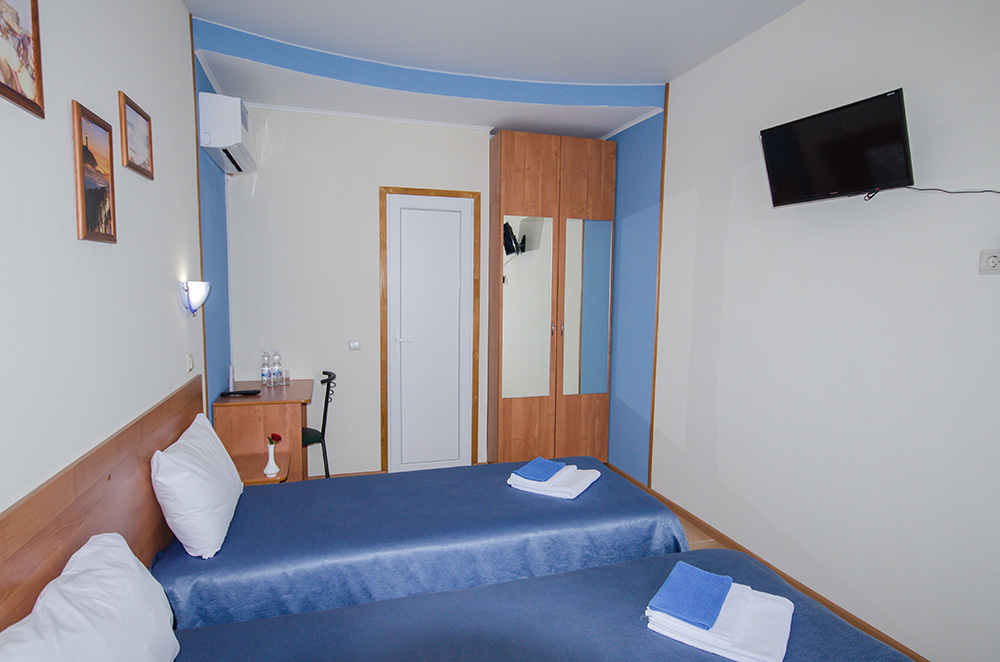«Стандарт» – 2-х местный номер. Возможность установки двух дополнительных мест. Номера «Стандарт» расположены на 2 и 3 этажах и имеют собственные балконы с видом на дачные и гостевые дома.