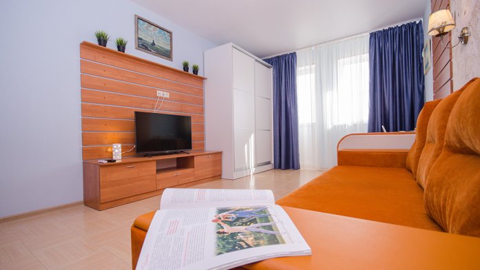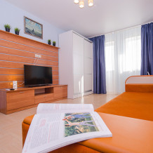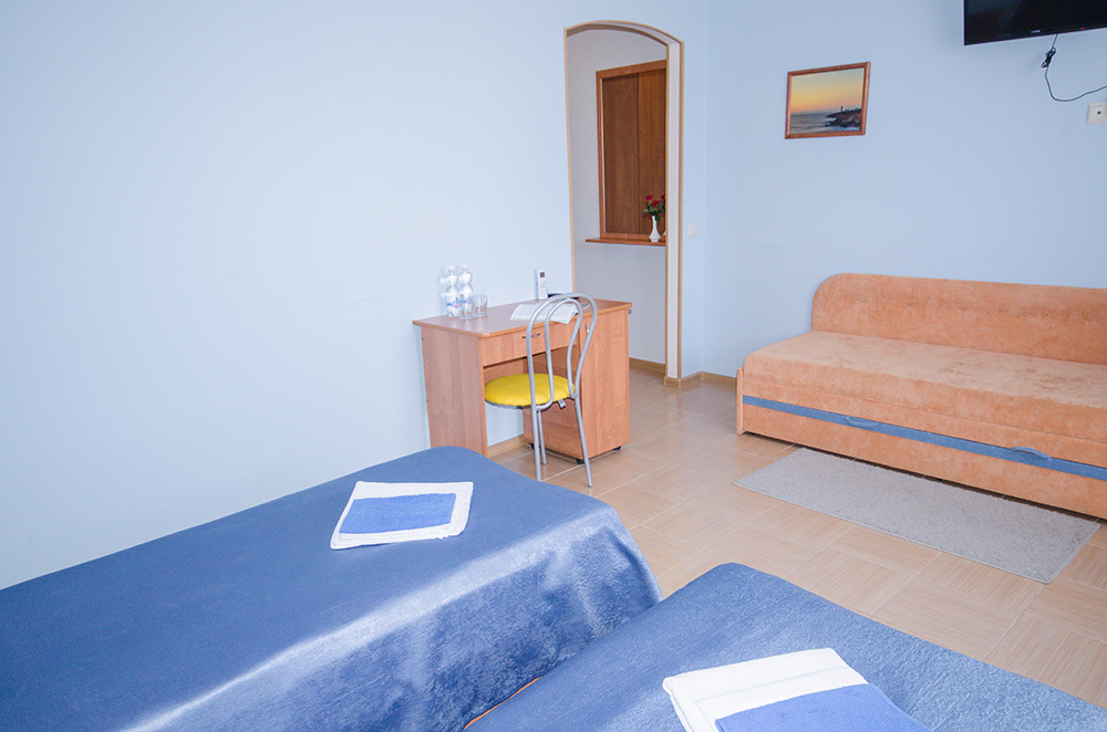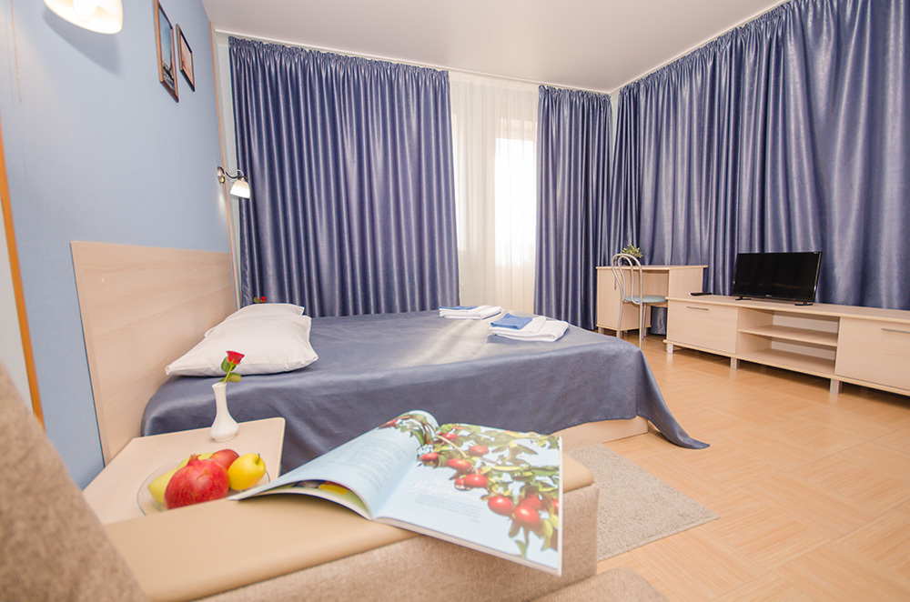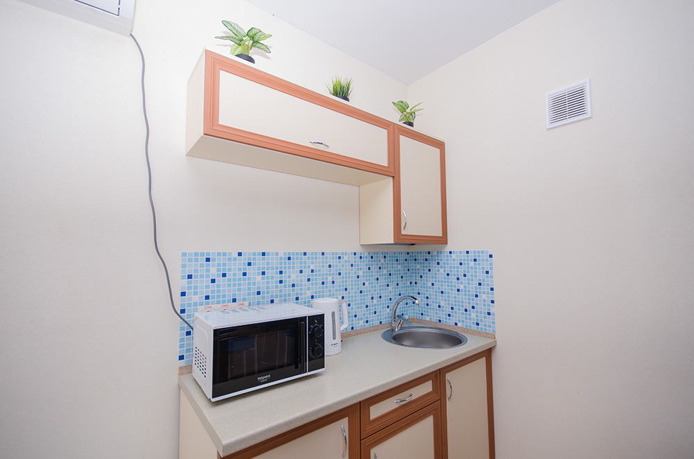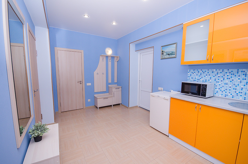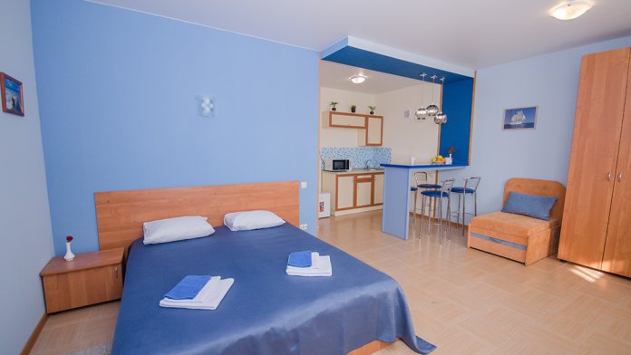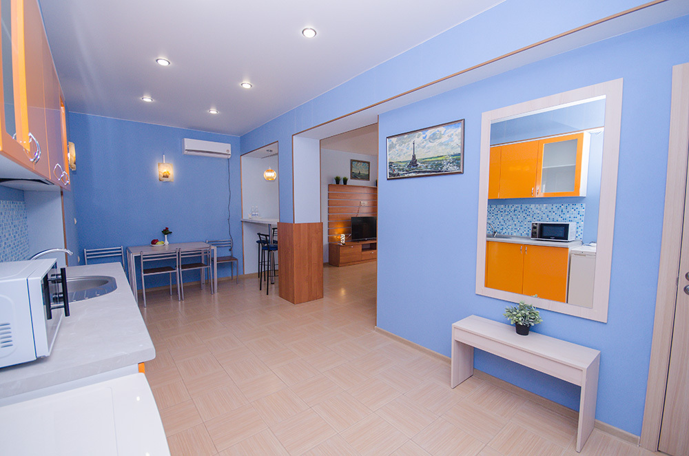 «Апартамент с мини-кухней» – 2-х местный номер. Возможность размещения трёх дополнительных мест. Номер 2-х комнатный и расположен на 3 этаже.