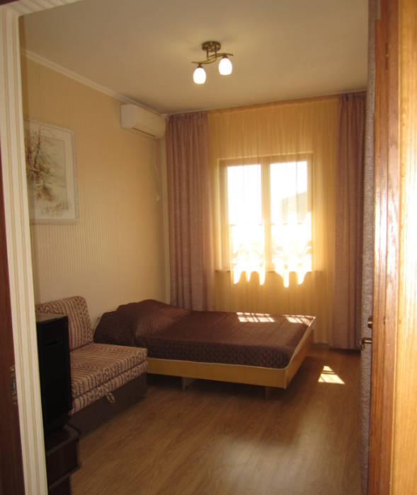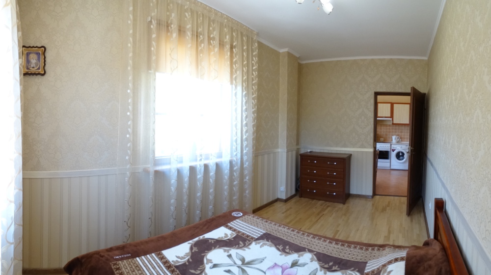 Отдельный вход и свой крытый дворик. Спальные места: диван раскладной двухспальный, топер матрас, два раскладных кресла. Стиральная машина. Есть бесплатная парковка под видеокамерами сразу возле дома.