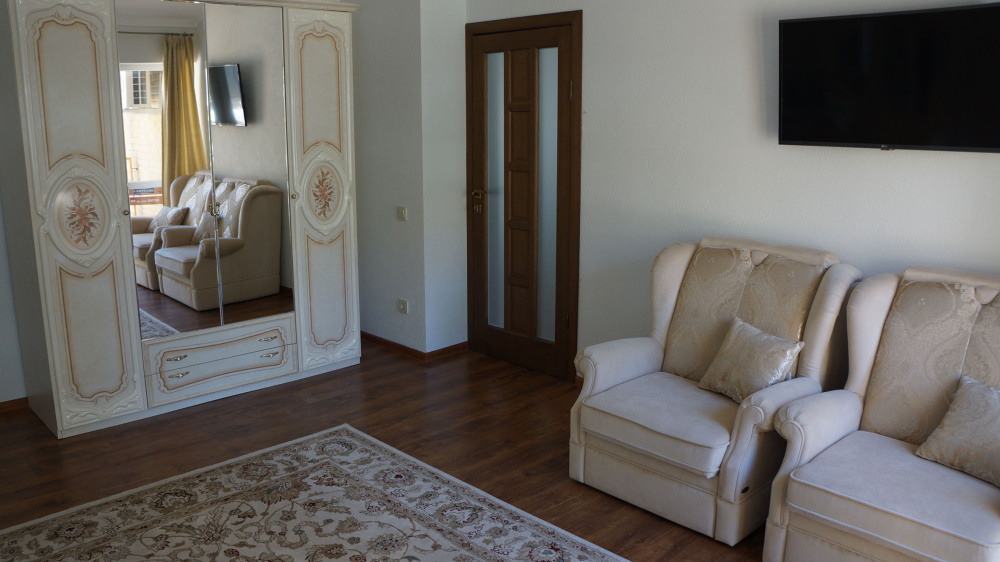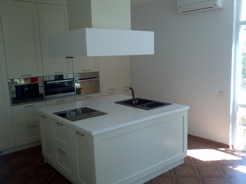 Техника в доме: три телевизора, пять кондиционеров, стиральная машина, на кухне встроенные кофемашина, холодильник, духовка, микроволновка, посудомойка, пароварка. Есть необходимая посуда.