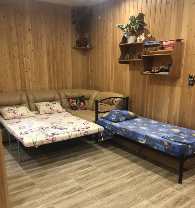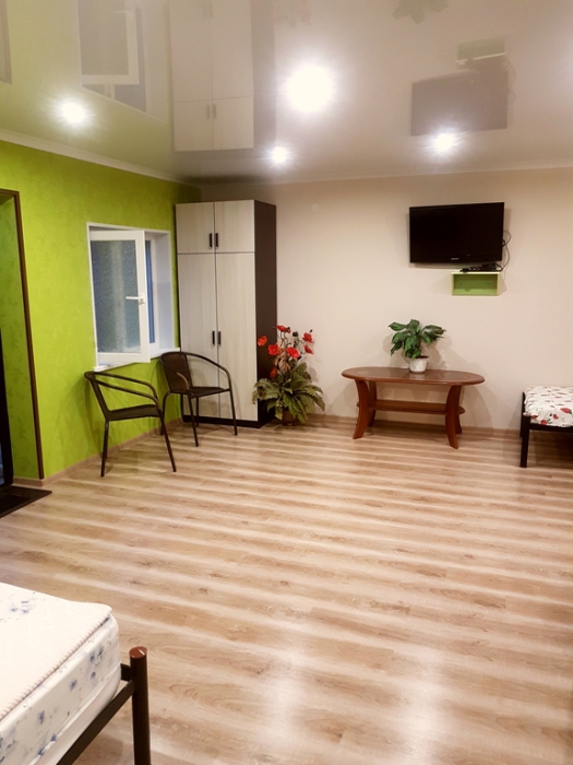 В номере: 2-спальняя кровать, 2-спальный диван, столик, кухонная зона, личный санузел, кондиционер, телевизор, интернет.