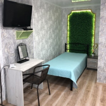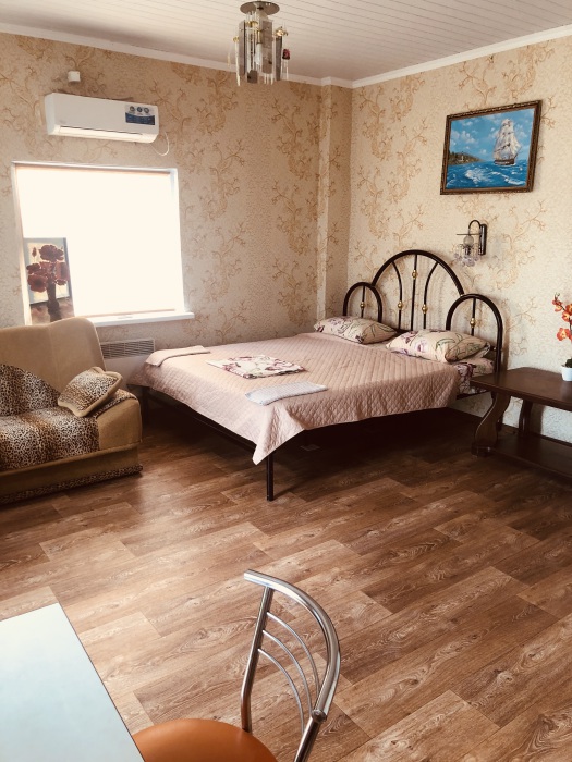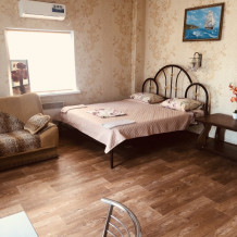 В номере «Люкс» под кухню выделена отдельная комната.Город Керчь-один из самых древних городов России.Здесь множество исторических мест,под Керчью расстелились огромные береговые линии Черного и Азовского морей,безлюдных пляжей.
