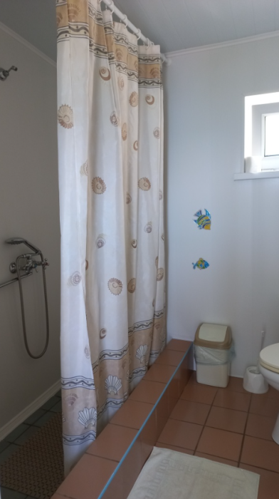 В доме большой балкон, просторная комната, полностью оборудованная и укомплектованная кухня (моющее средство, губки, кухонное полотенце, мусорные пакеты), санузел (банные полотенца, мыло, туалетная бумага, душ, холодильник. Круглосуточно холодная и горячая вода, телевизор с кабельным подключением, Wi-Fi. Из окон открывается шикарный вид на залив и горы, на террасе место для отдыха на открытом воздухе.