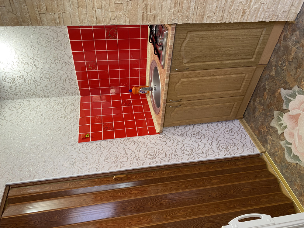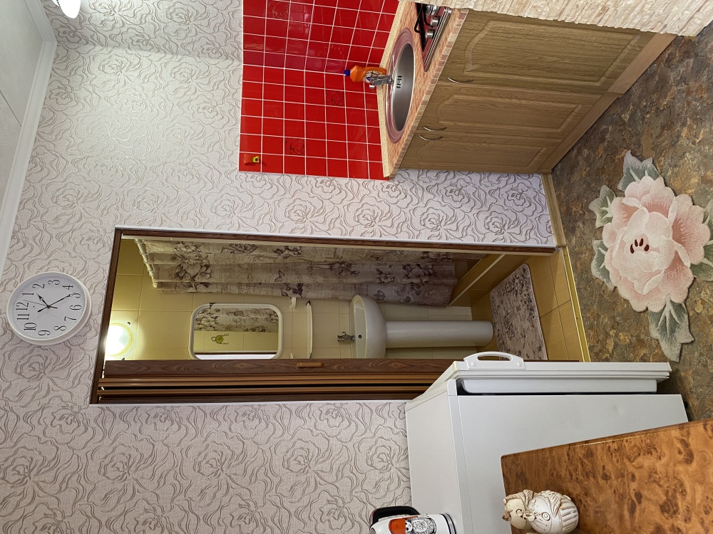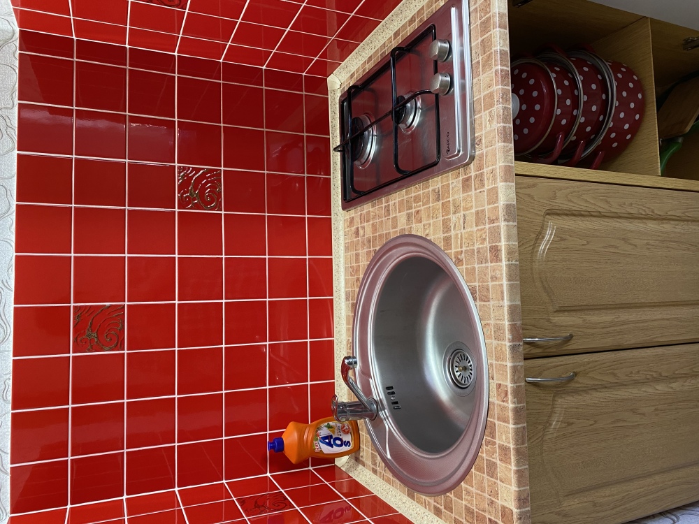 На кухне вся необходимая мебель и оборудование: , газовая плита, комплект посуды.