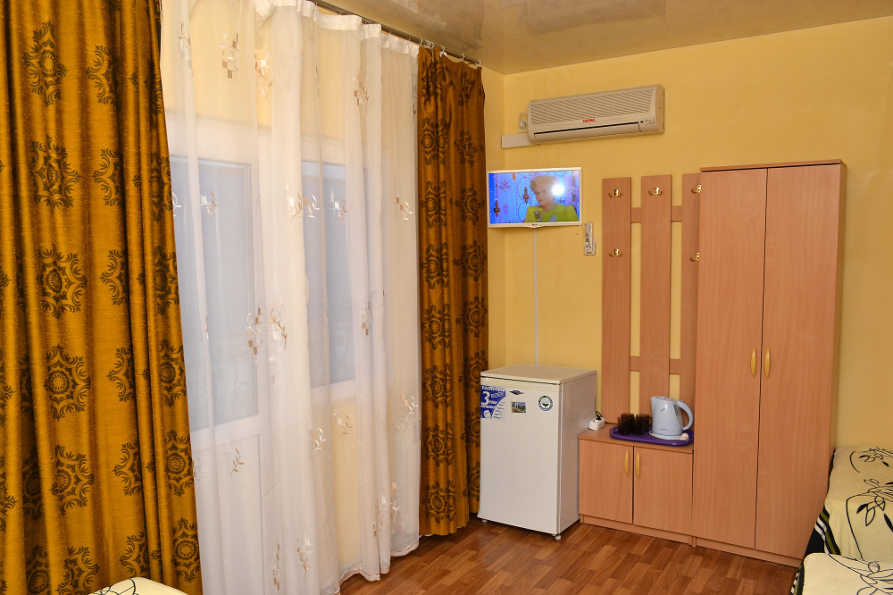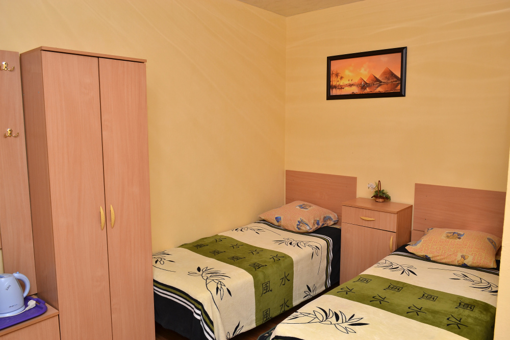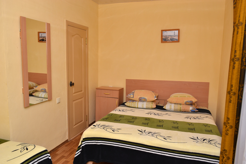 Для отдыха гостям предлагаются 3-х и 4-местные комнаты, в которых есть вся необходимая мебель, посуда для чая, кофе, холодильник, телевизор, сейф, фен. В комнатах также есть кондиционер, что немаловажно для отдыха в летний жаркий период. Интерьер выполнен в спокойных, светлых тонах. В каждой комнате имеется отдельный санузел с душем и набором полотенец (в том числе и для пляжа).