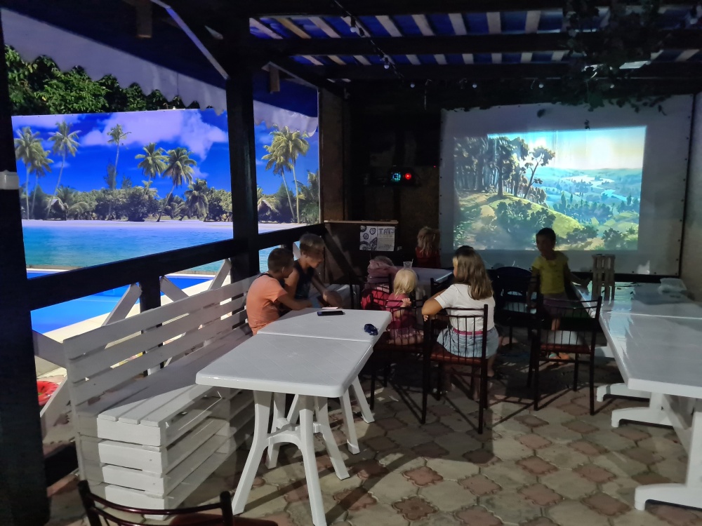На территории вы и ваши детки сможете воспользоваться активными и настольными играми, мини-библиотекой.
