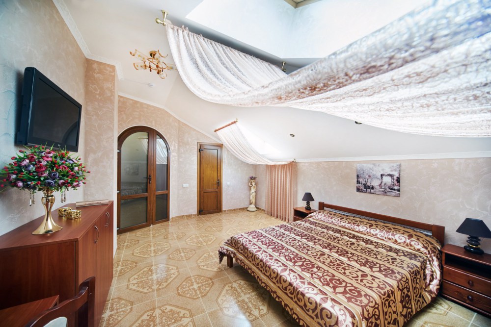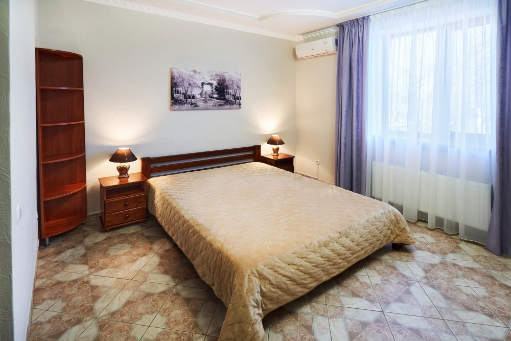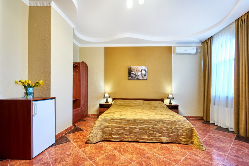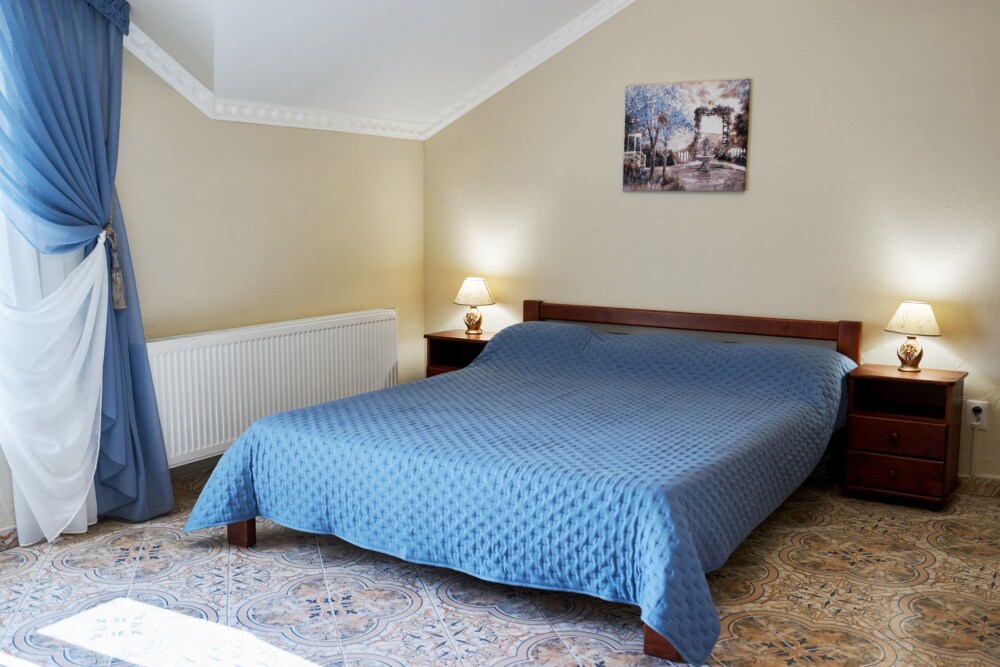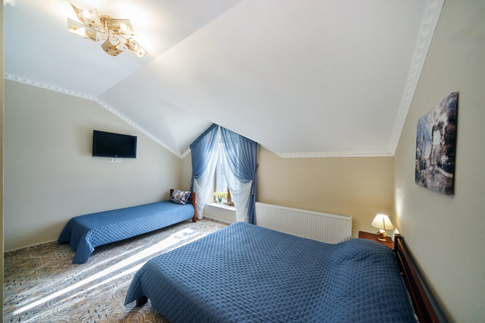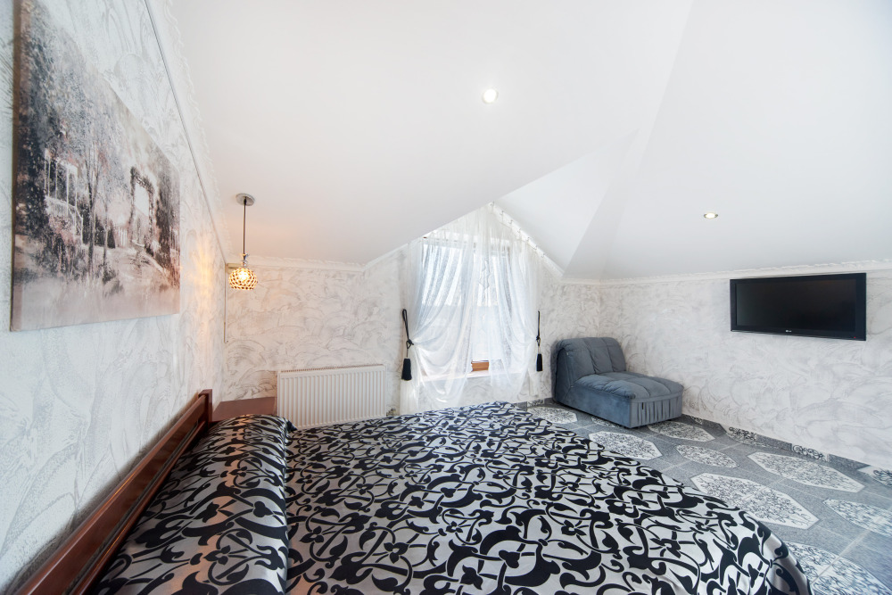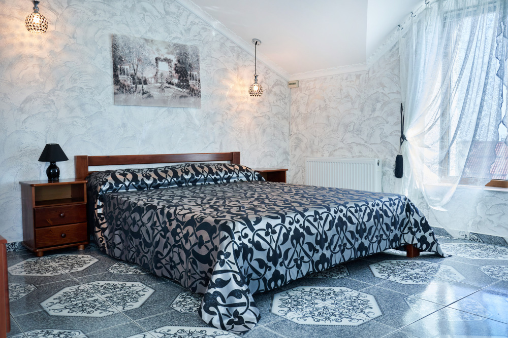 В гостевом доме есть номера, которые подойдут как небольшой семье или компании, так и большие двухкомнатные номера, которые вмещают в себя до 6 человек.