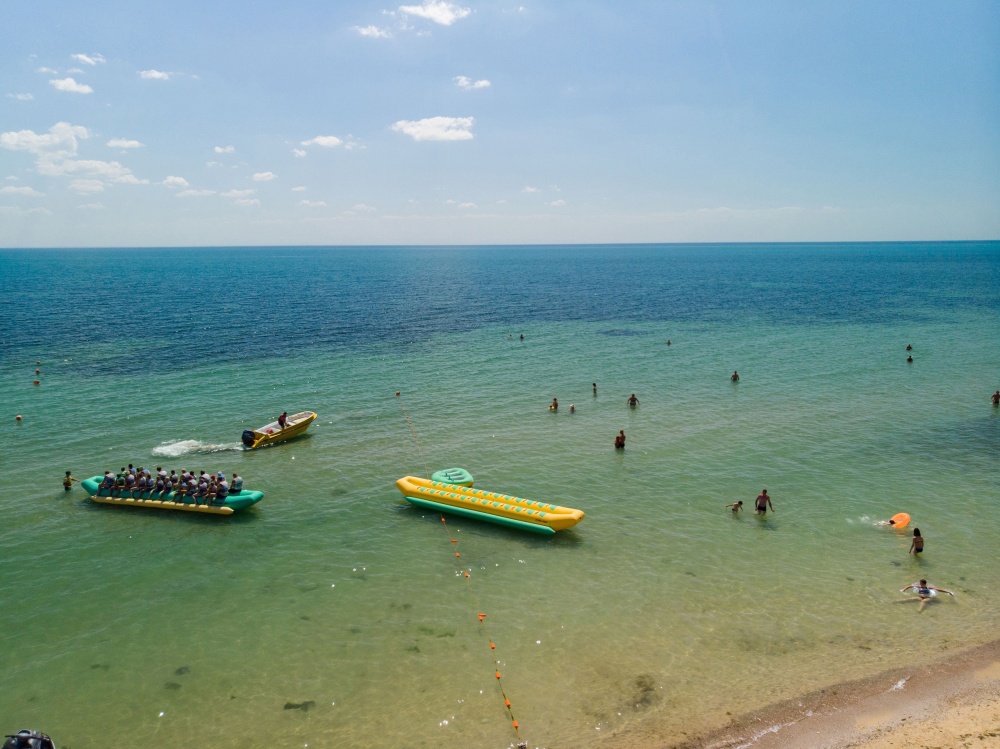 Мамам с детками будет интересно посетить такие места, как: аквапарк «У Лукоморья», дельфинарий, аквариум, тропик парк, дом великана, веревочный парк, парк «Крым в миниатюре» или парк аттракционов. Все это находится в 7 км от нас, на центральной набережной г. Евпатории. У Вас будет уникальная возможность посетить самый большой аквапарк Крыма «Банановая республика», к которому очень часто курсируют бесплатные маршрутные автомобили.