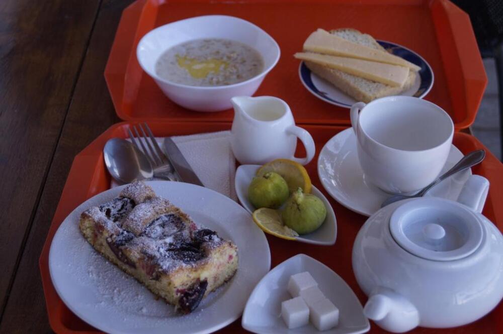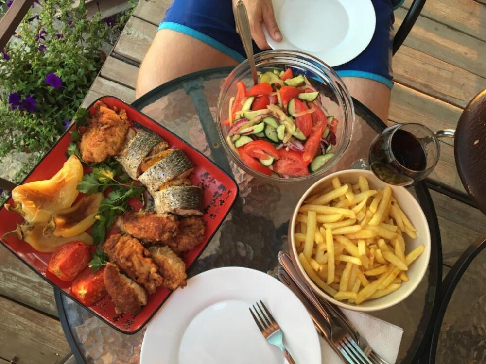 На территории работает ресторан. По запросу осуществляется доставка еды и напитков в номер и доставка продуктов, а также подаются завтраки. На ужин можно заказать свежевыловленную рыбу.