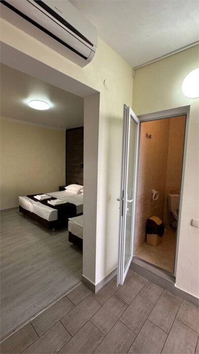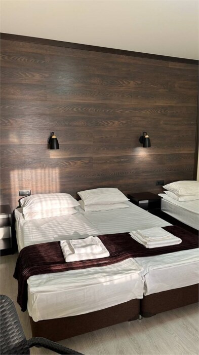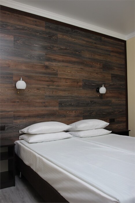 Номера находятся на 3 этаже. Вход в номер осуществляется с проходного балкона (у каждого гостя есть своя часть балкона для отдыха). В номере: телевизор, холодильник, кондиционер, шкаф, стол, стулья, чайник, санузел, горячая/холодная вода круглосуточно, душ. Смена полотенец и первая уборка номера происходят на 3-й день проживания. Смена постельного белья, полотенец и уборка происходят на 6-й день проживания. Отопление: кондиционер и электробатарея. На кроватях ортопедические матрасы. Возможна трансформация двуспальной кровати в две односпальные.