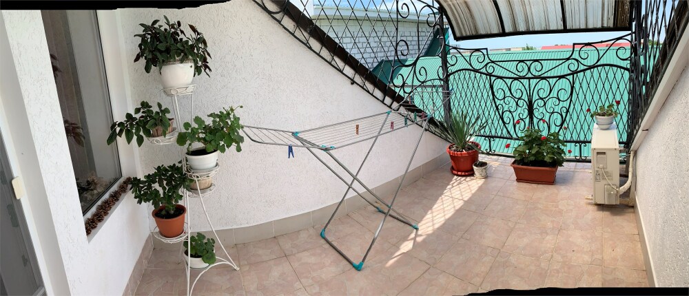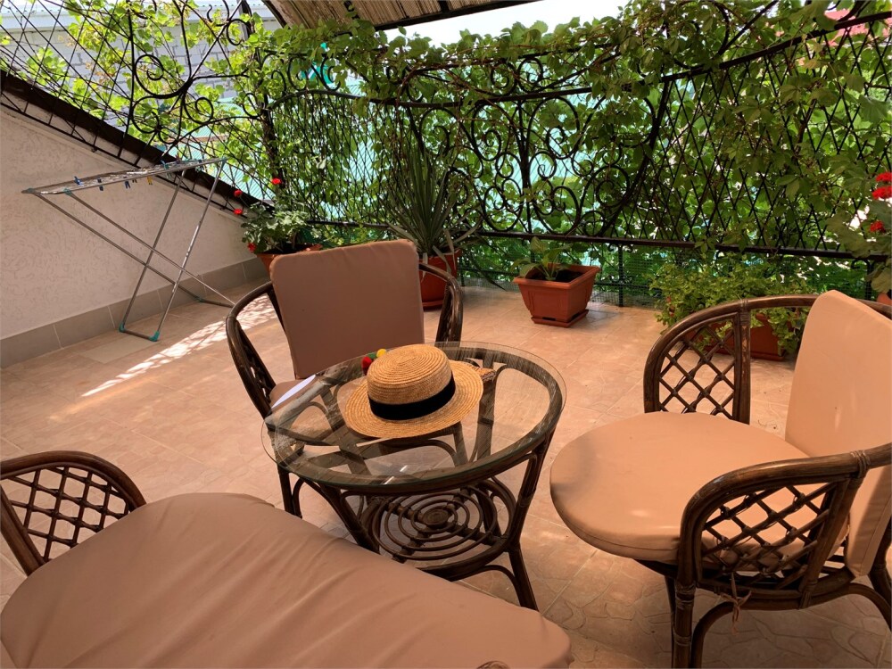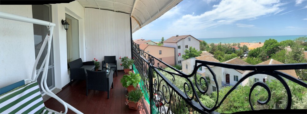 Номер находятся в мансарде здания. В номере просторная гостиная, комфортная спальня, большой балкон с обеденной мебелью и садовой качелью. В гостиной диван трансформируется в спальное место для двоих гостей. В номере: телевизор, холодильник, кондиционер, шкаф-купе, стол, барные стулья, барная стойка, чайник, посуда, столовые приборы, печь свч, мини-кухня, куллер с водой, санузел, горячая/холодная вода круглосуточно, душ, халаты, тапочки. Отопление: кондиционер, электробатарея. На кроватях ортопедические матрасы.