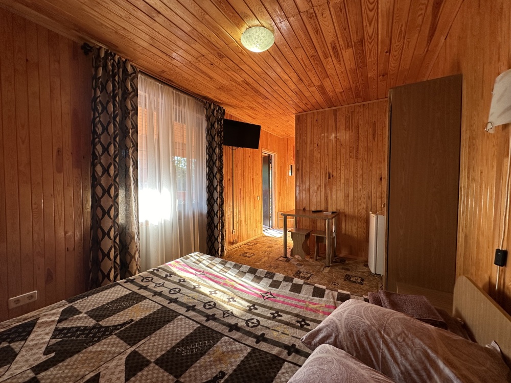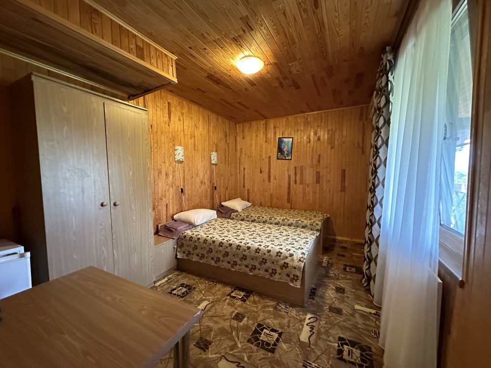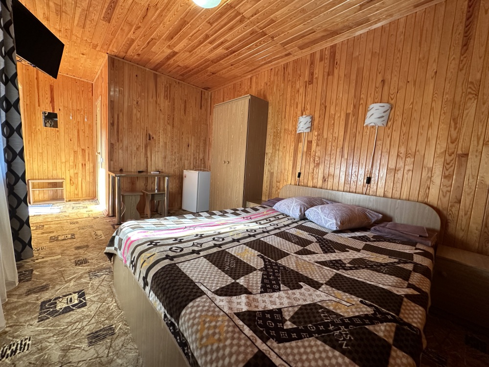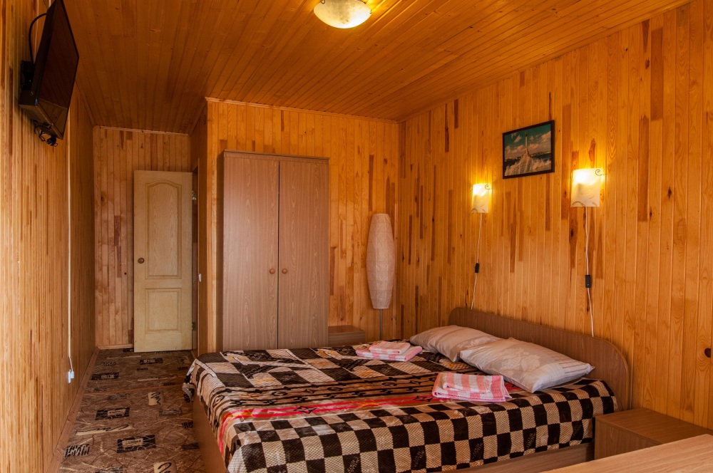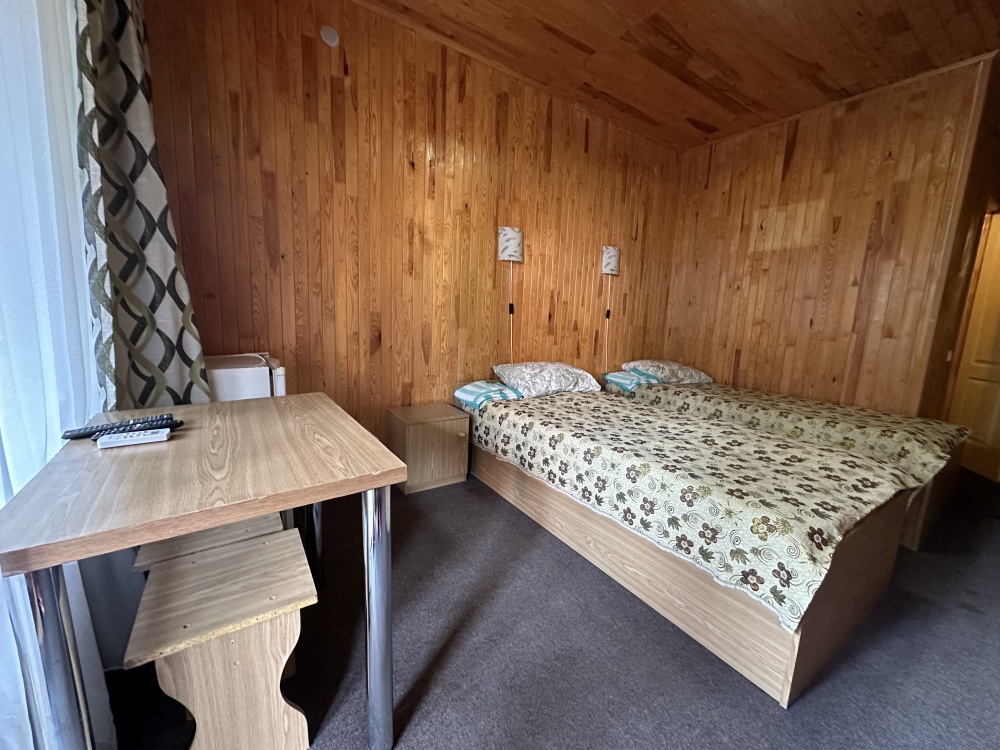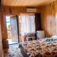 Однокомнатный двухместный номер. В номере двуспальная кровать с возможность размещения доп места (евро раскладушка). Номер со всеми удобствами (Душ, туалет, холодильник, телевизор, кондиционер, электро обогреватель)