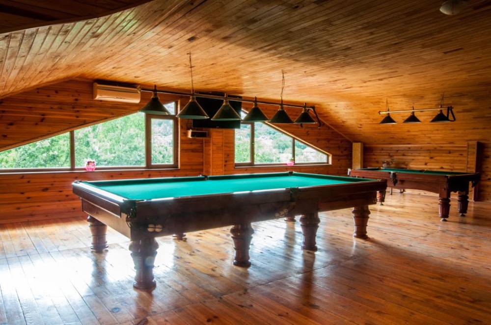 В одном из коттеджей на 1-м этаже находится кухня и столовая на 32 человека. Тут Вы сможете заказать еду. Для любителей бильярда, на втором этаже есть стол для русского и американского бильярда. Для отдыхающих мы предлагаем на территории настоящую русскую дровяную баню и оздоравливающую соляную комнату. В баньке Вы сможете восстановить силы, отдохнуть телом и душой. О соляной комнате скажем следующее: условия максимально приближены к настоящей соляной пещере, поэтому Вам будет так же комфортно и полезно посидеть в этой соляной атмосфере, что очень благотворно влияет на общее самочувствие человека, на дыхательные органы. Вообщем сможете отдохнуть и расслабиться в тихой и спокойной обстановке, помогая почувствовать настоящее расслабление и отдых на природе.