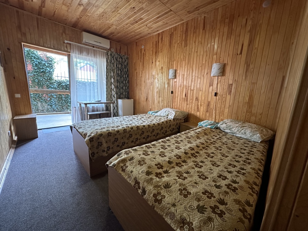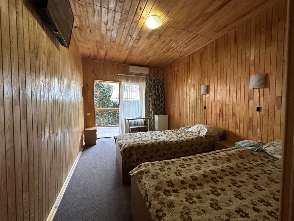 Однокомнатный двухместный номер. В номере две односпальные кровати с возможность размещения доп места (евро раскладушка). Номер со всеми удобствами (Душ, туалет, холодильник, телевизор, кондиционер, электро обогреватель)
