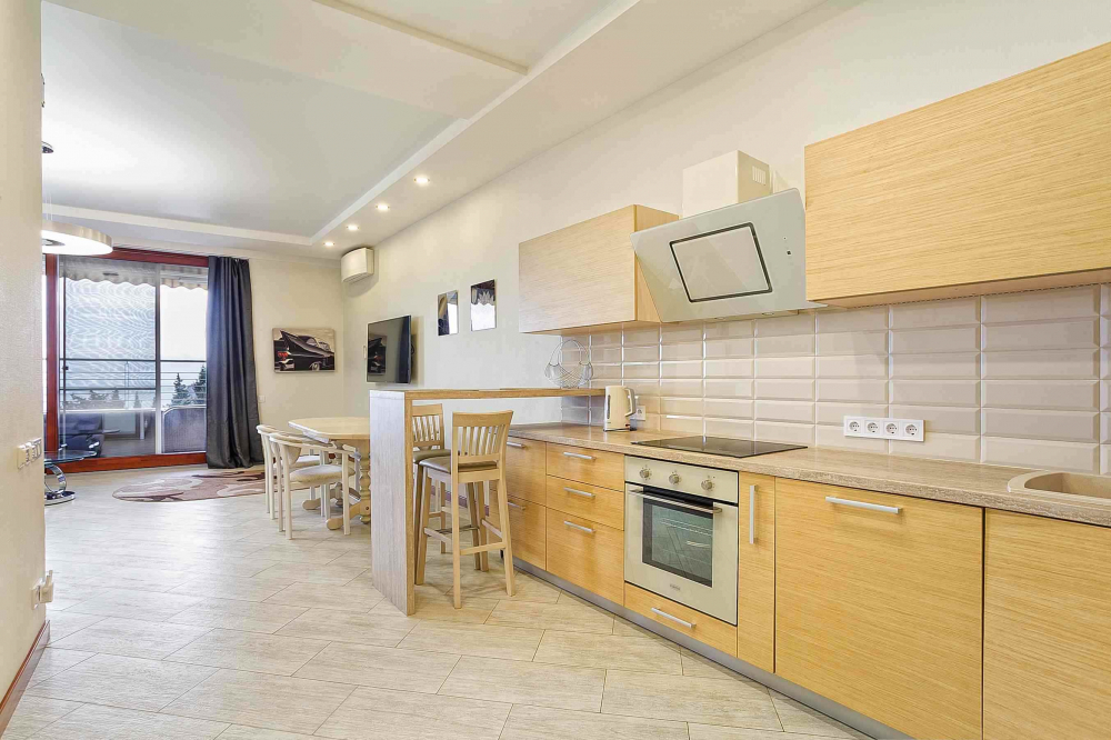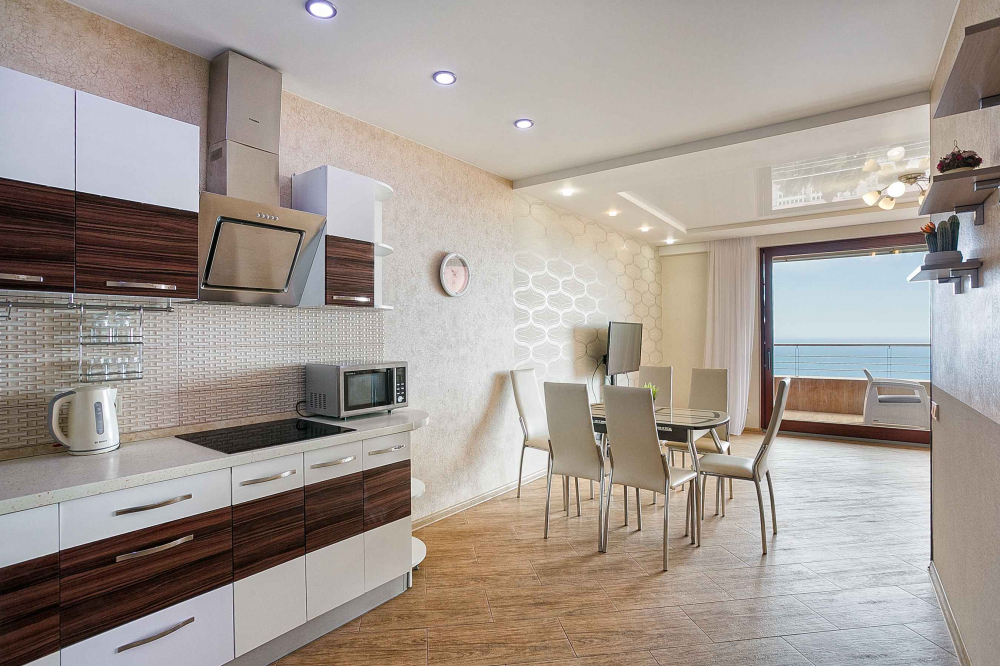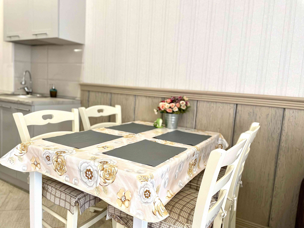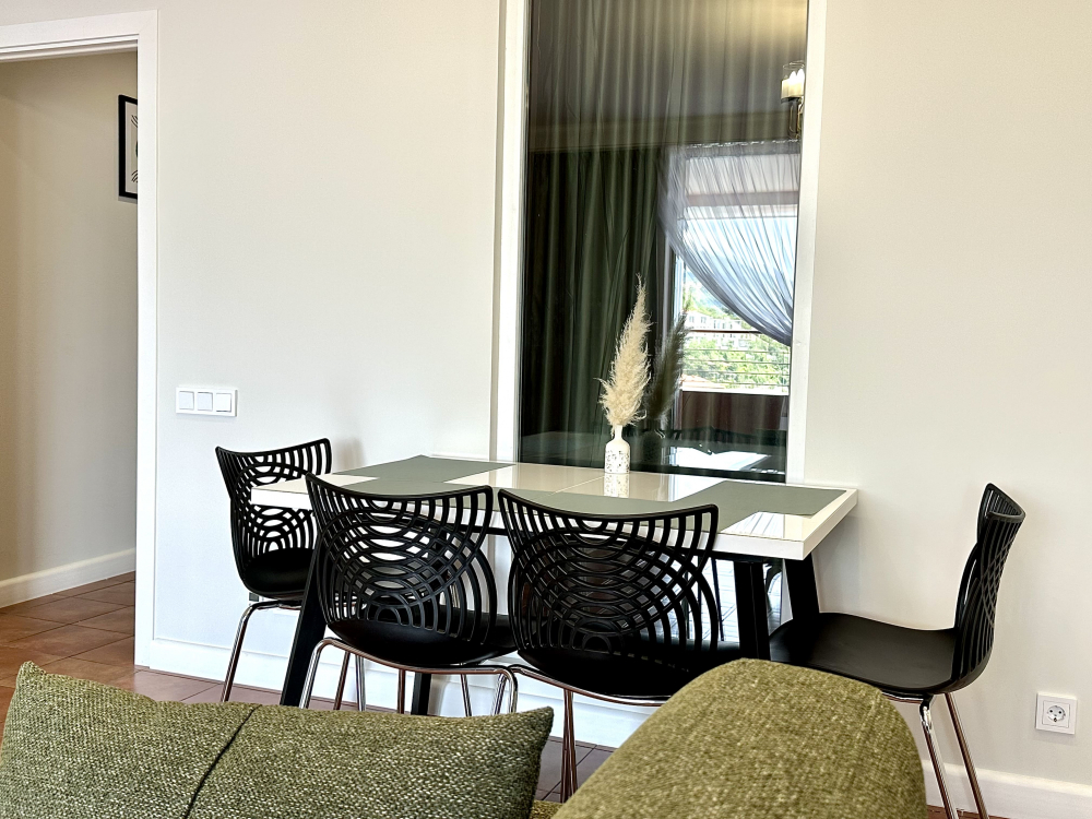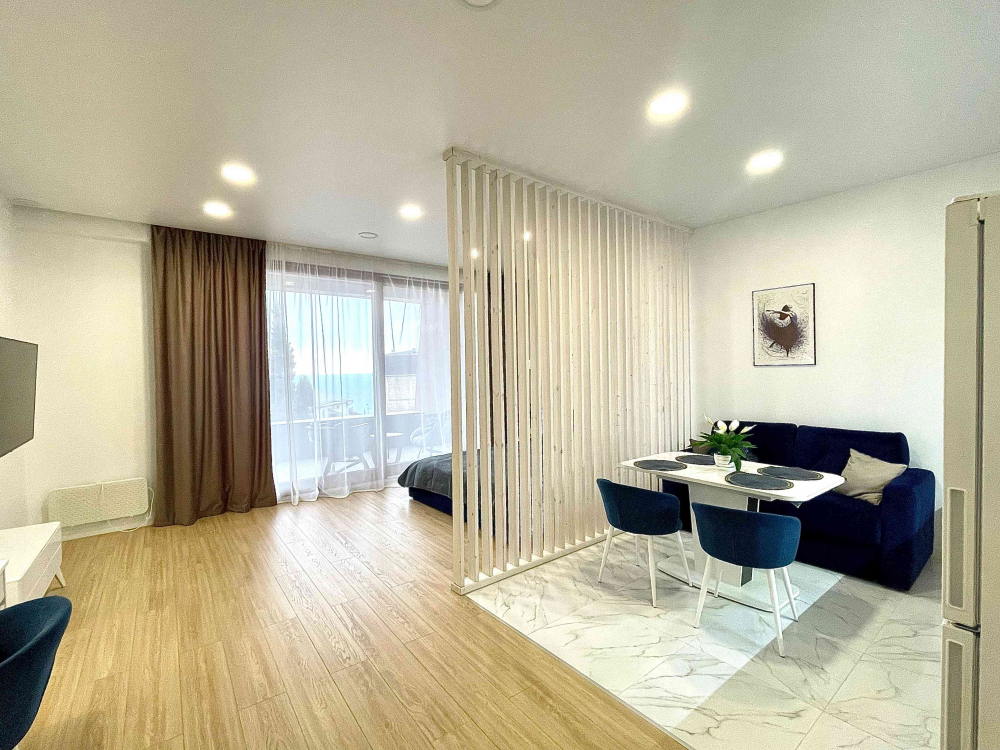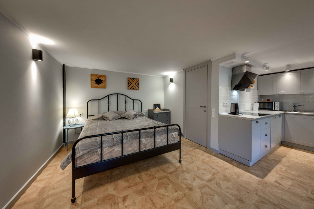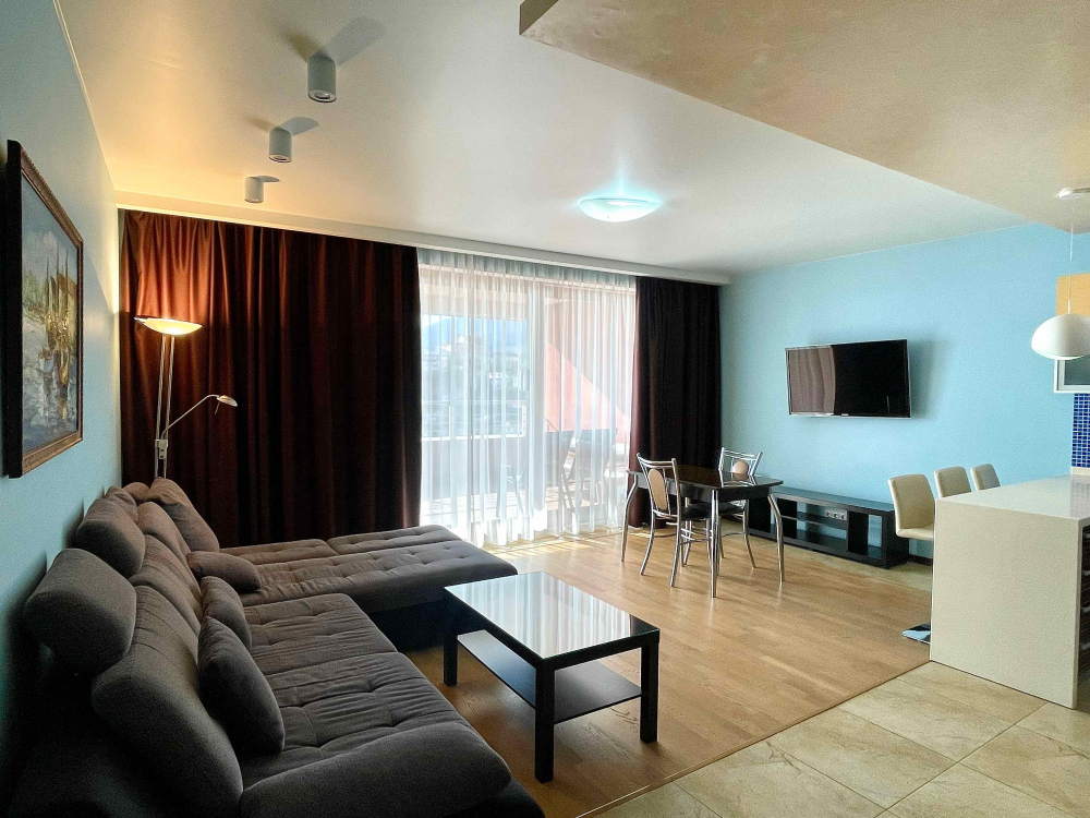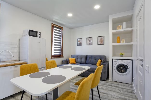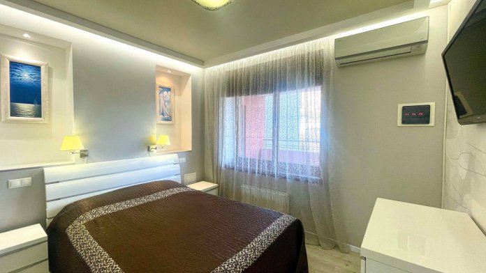 Все апартаменты укомплектованы современной бытовой техникой. В каждых апартаментах имеются постельные принадлежности - белье и полотенца, а так же необходимый набор кухонных принадлежностей и посуды. Комплектация апартаментов отвечает самым высоким требованиям. Из всех апартаментов открывается незабываемый вид на море и горы.