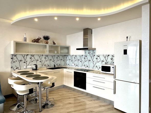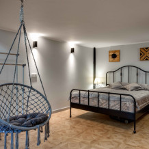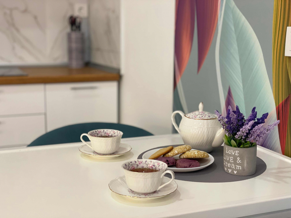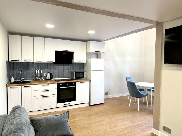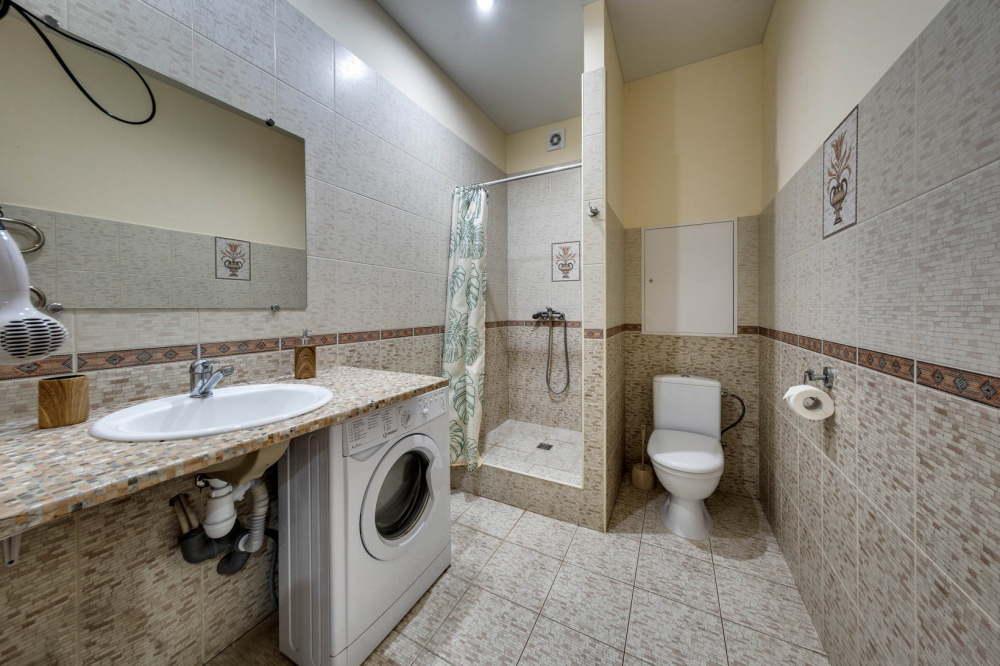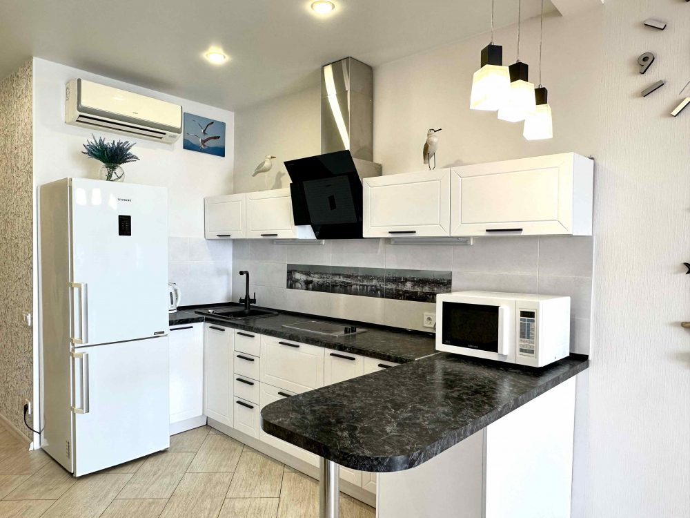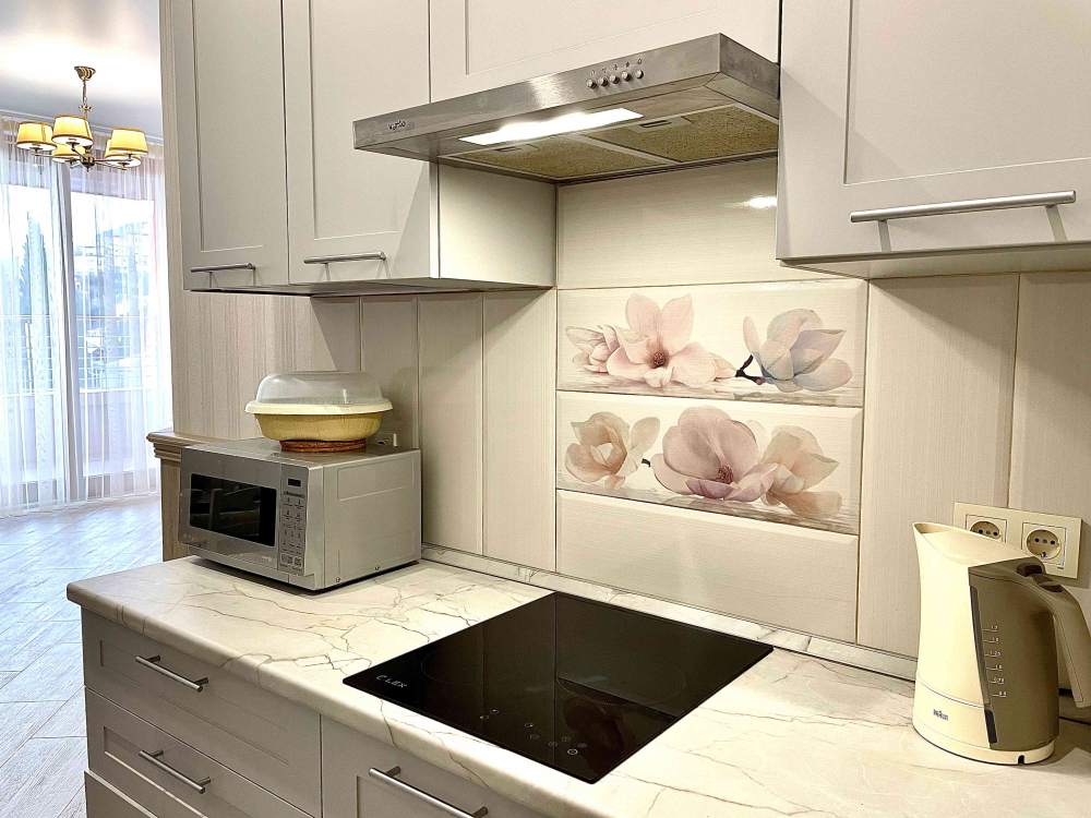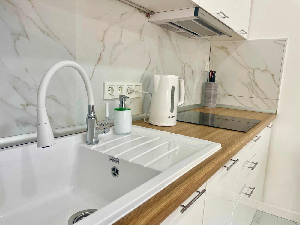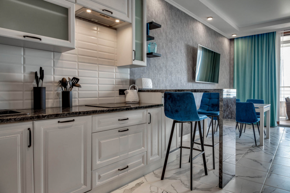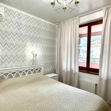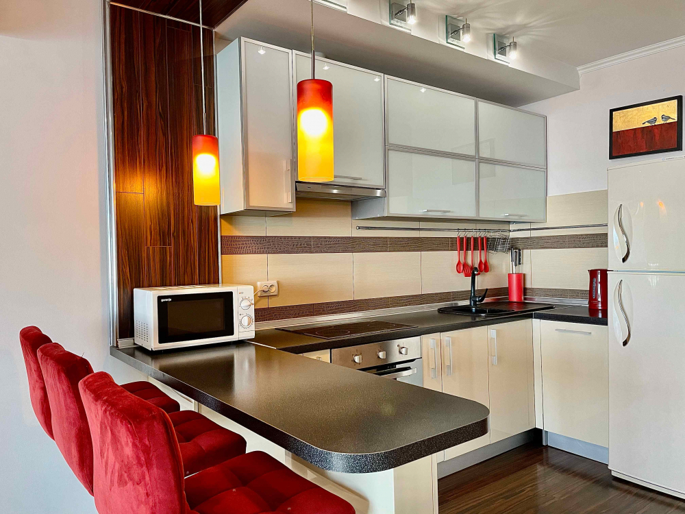 Все апартаменты укомплектованы современной бытовой техникой. В каждых апартаментах имеются постельные принадлежности - белье и полотенца, а так же необходимый набор кухонных принадлежностей и посуды. Комплектация апартаментов отвечает самым высоким требованиям. Из всех апартаментов открывается незабываемый вид на море и горы.