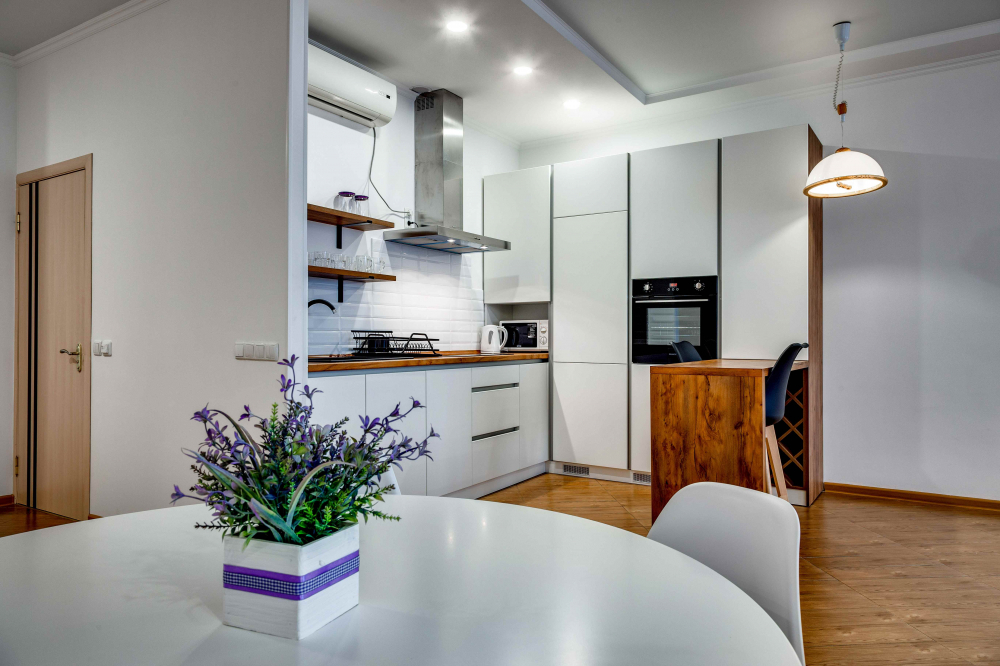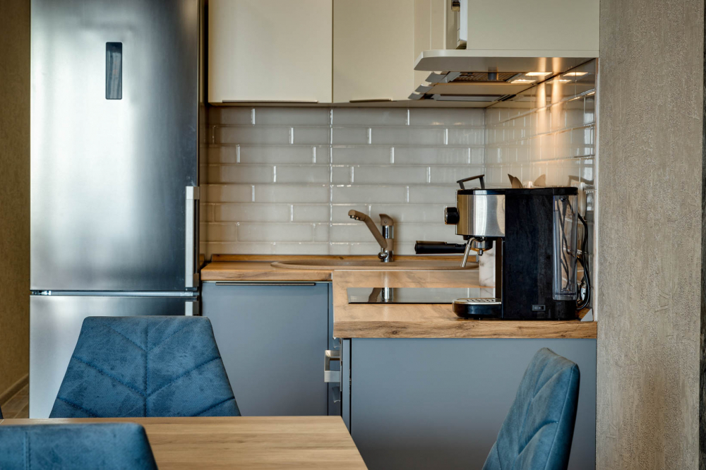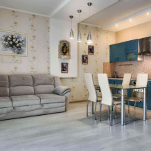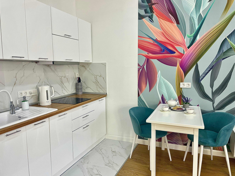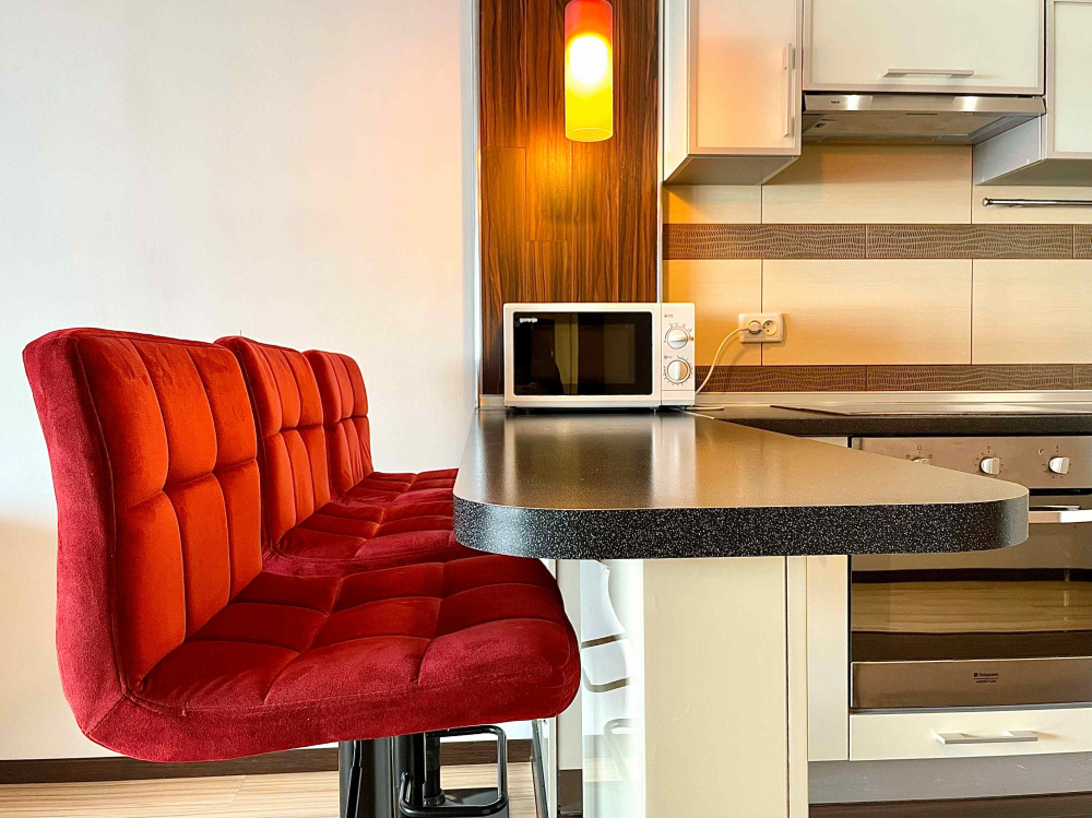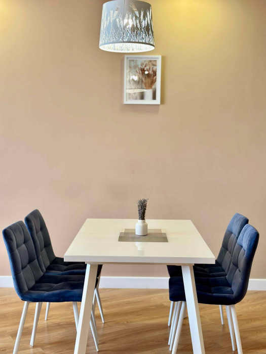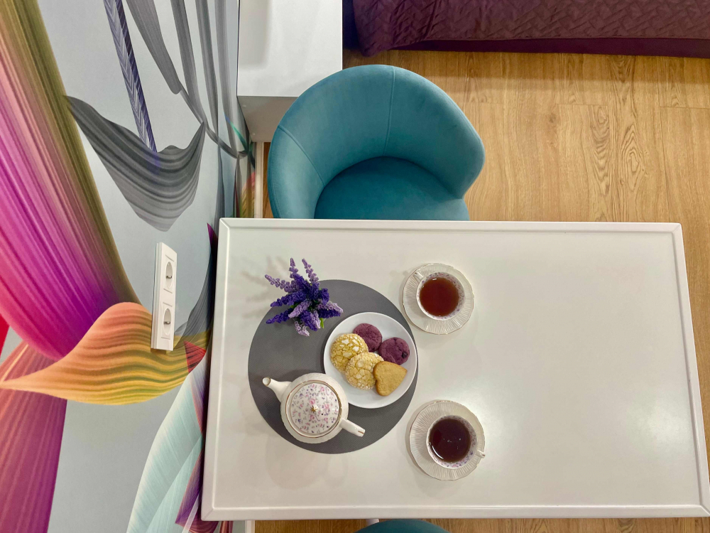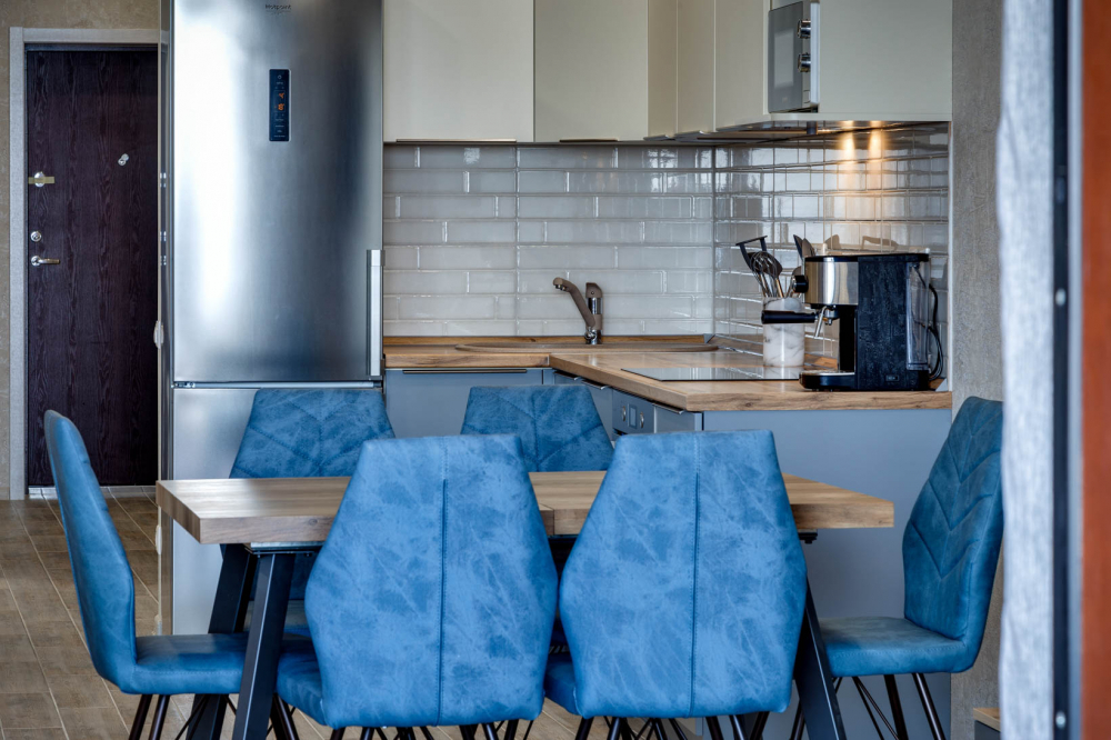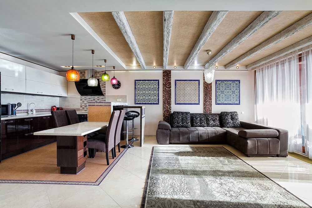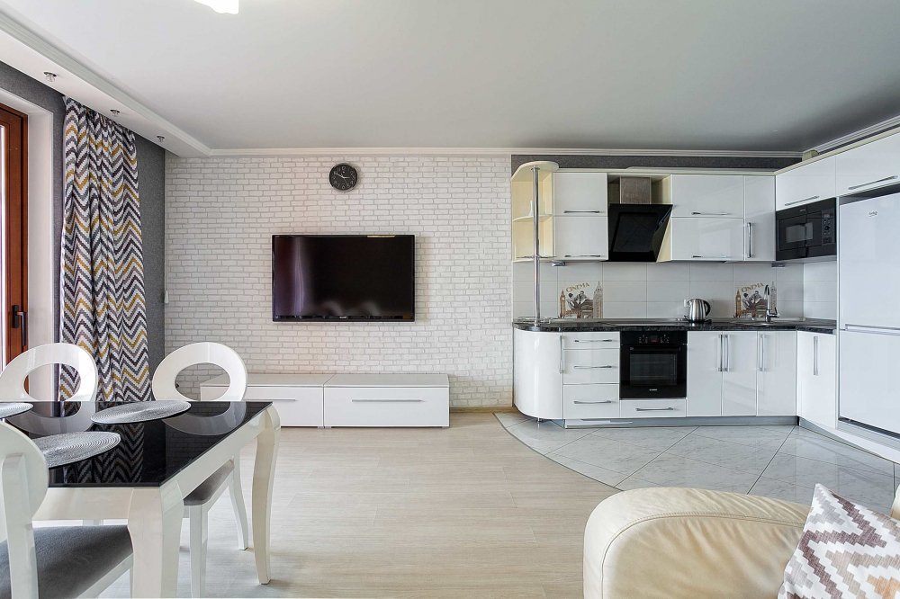 Все апартаменты укомплектованы современной бытовой техникой. В каждых апартаментах имеются постельные принадлежности - белье и полотенца, а так же необходимый набор кухонных принадлежностей и посуды. Комплектация апартаментов отвечает самым высоким требованиям. Из всех апартаментов открывается незабываемый вид на море и горы.