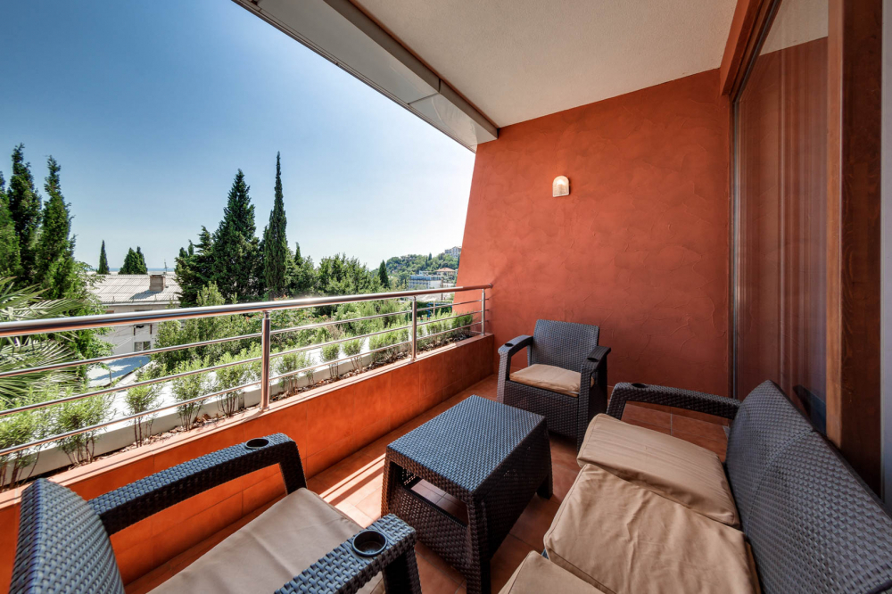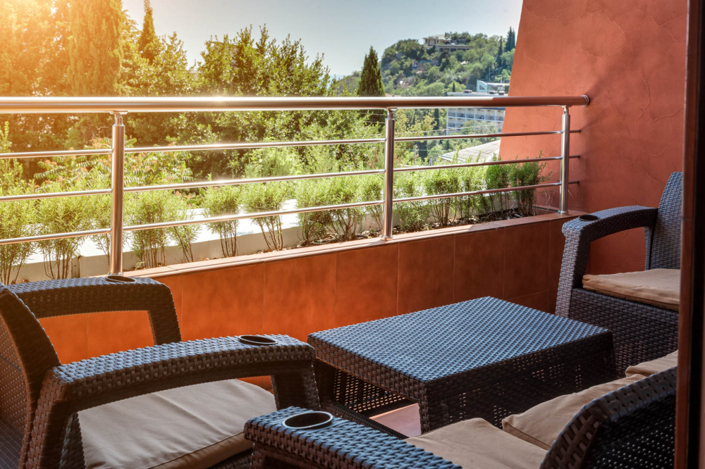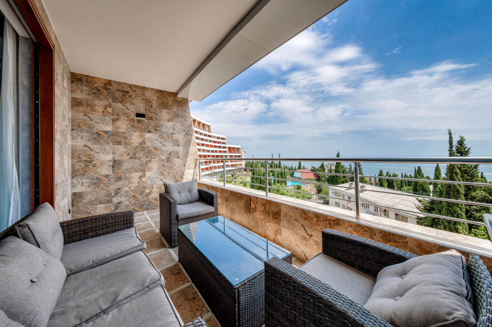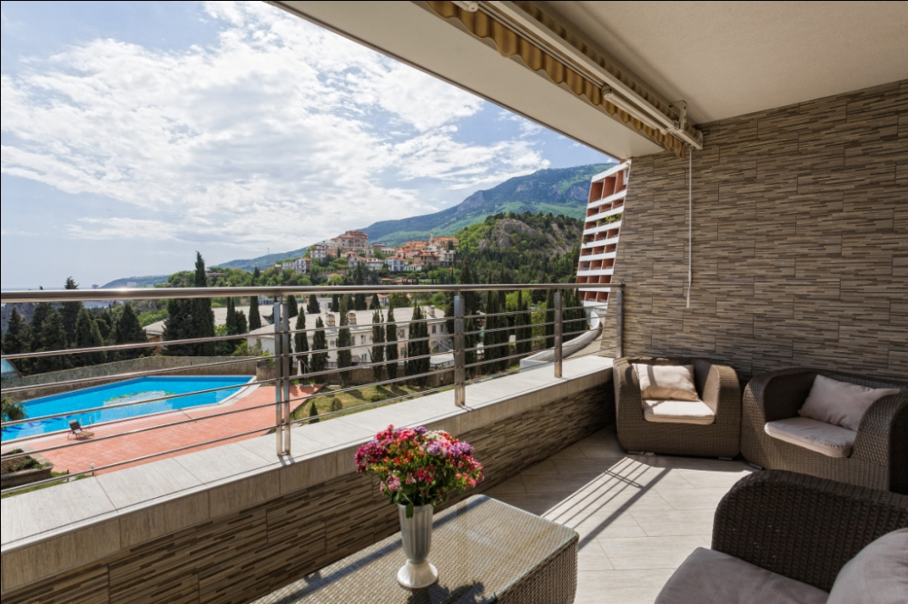 Два балкона: 12+12 кв.м., укомплектованы летней мебелью.