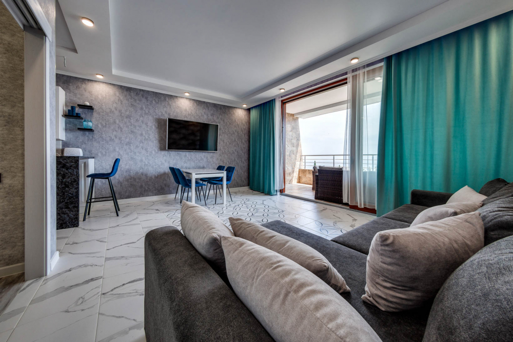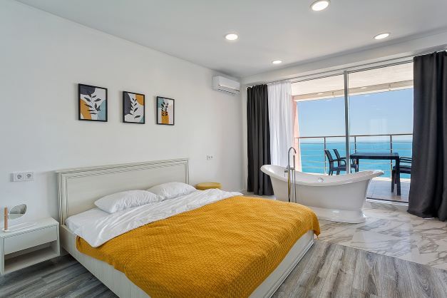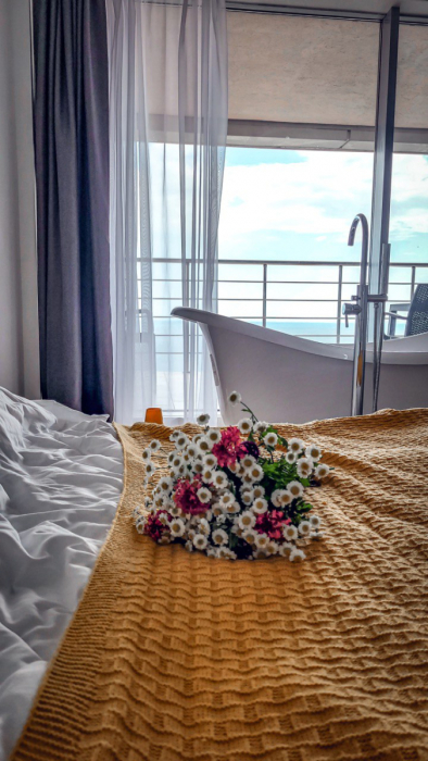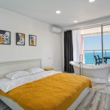 Восхитительный вид на море из большинства номеров, благоустроенная охраняемая территория, большой бассейн под открытым небом и изысканность убранства апартаментов заставляют наших гостей возвращаться к нам снова и снова!