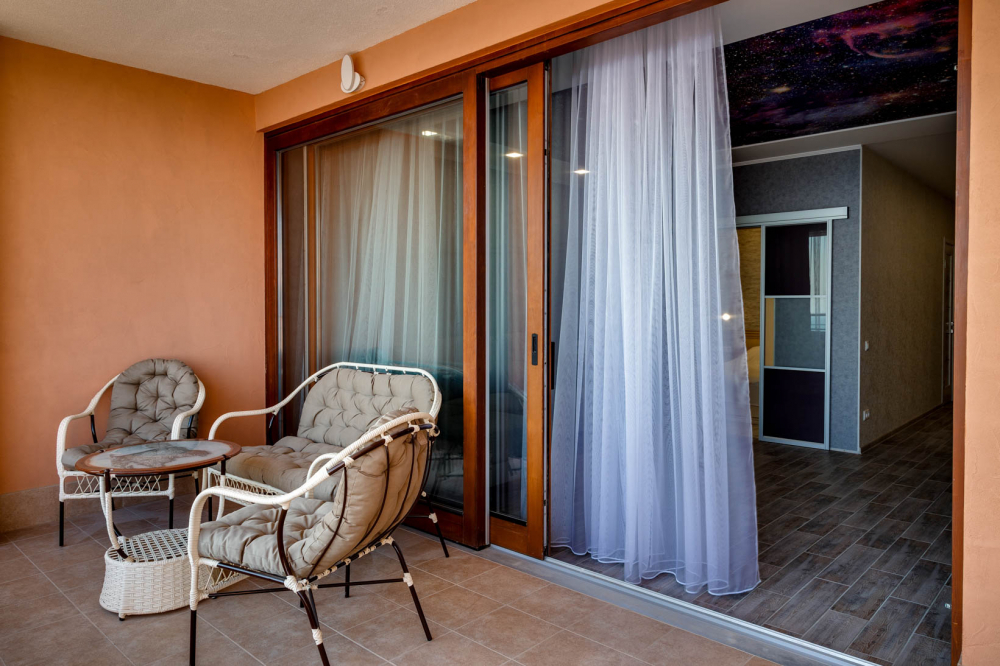 Балкон 22 кв.м., укомплектован летней мебелью.