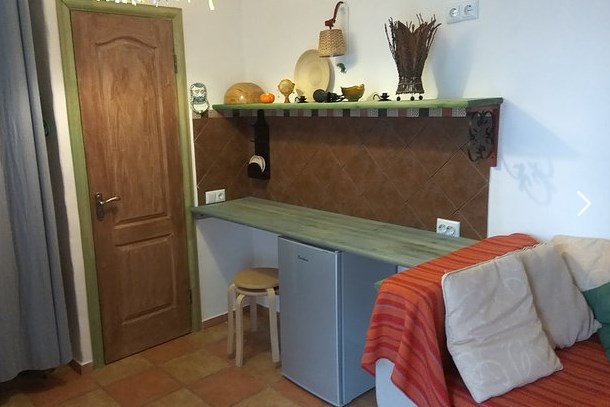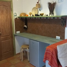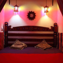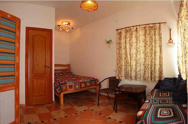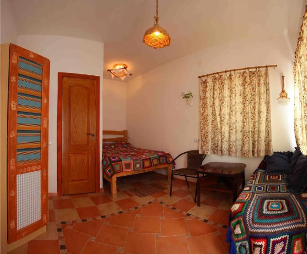 Просторная комната отделана в этническом стиле и оснащена всем необходимым для комфортного проживания двух человек. Приватная уличная зона, двухспальная кровать, санузел, мини-кухня. Имеется камин-печь для дополнительного обогрева комнаты в межсезонье, что создает атмосферу особого уюта. При необходимости можно организовать одно дополнительное место.
