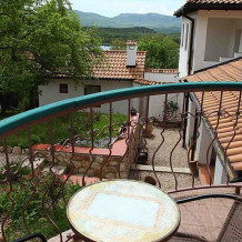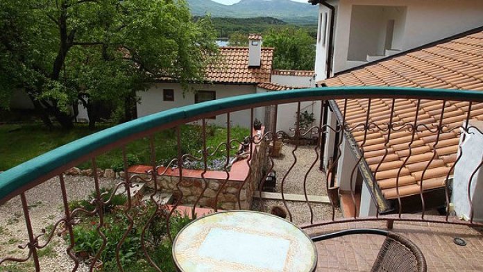 В деревенском стиле и оснащена всем необходимым для комфортного проживания. Приватная уличная зона с видом на горы и озеро, двуспальная кровать, раздвижной диванчик, санузел.