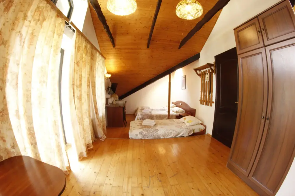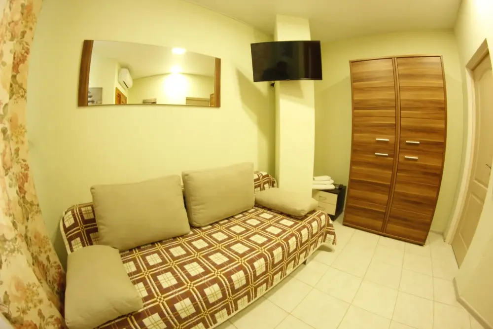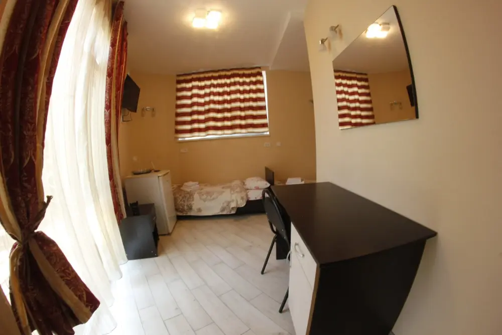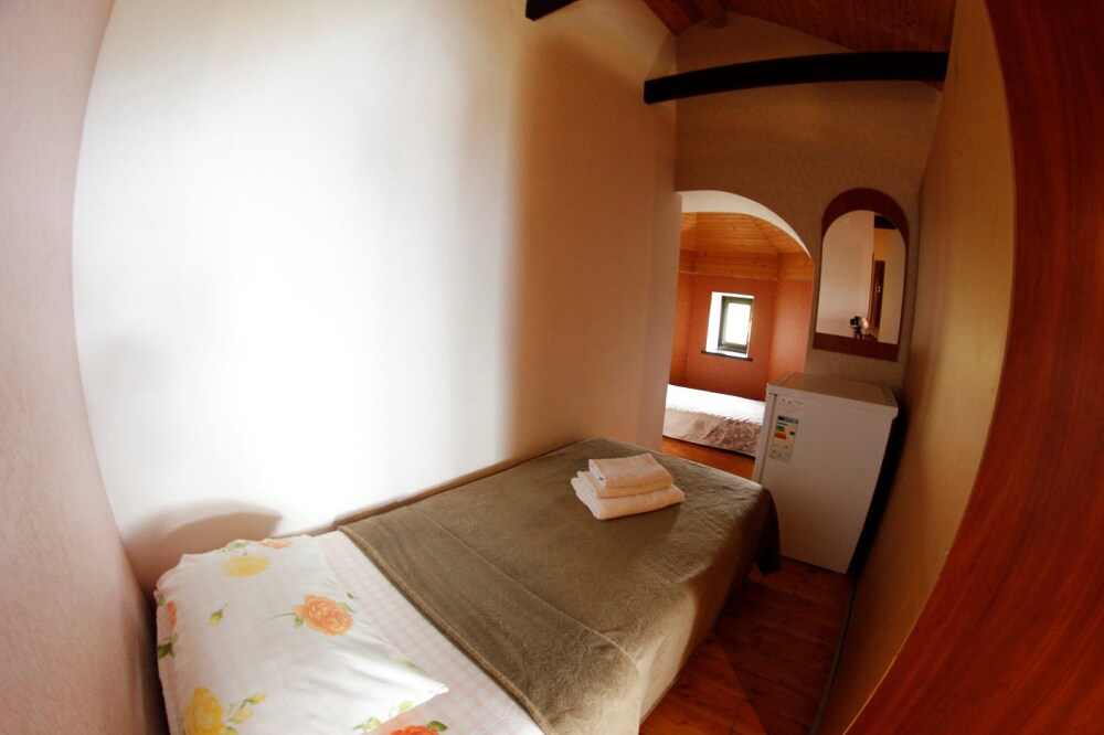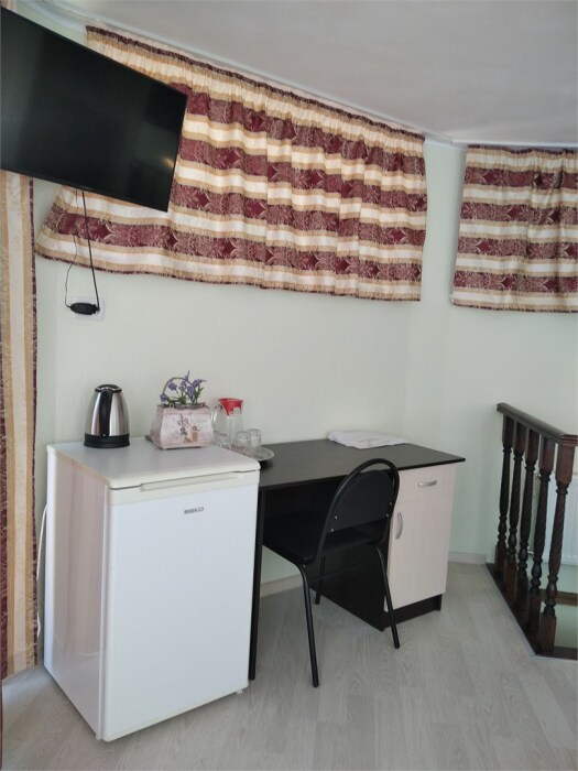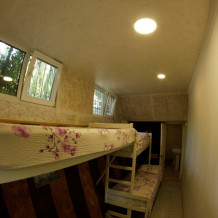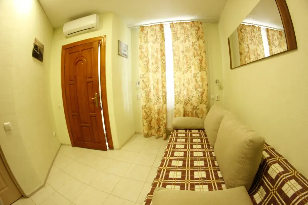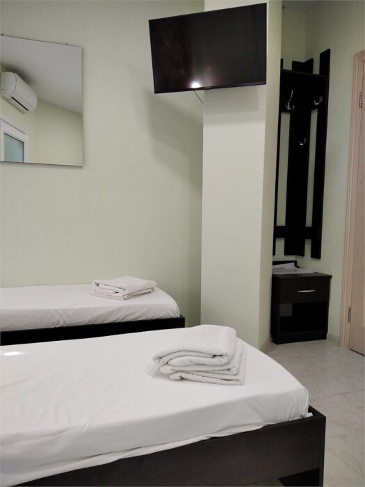 Мега бюджетный номер на 3 человека, хостельного типа. В номере все необходимое: санузел, душевая кабина, двухъярусная кровать, шкаф, зеркало, отдельный вход во двор.