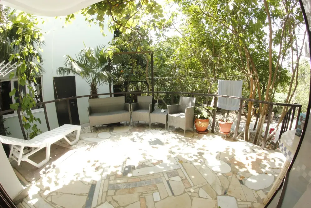 Эконом Стандарт №13 - номер площадью 13 кв. метров, располагается на 1 этаже. Имеет индивидуальный выход на зеленый дворик с беседкой и садом.