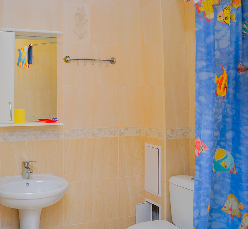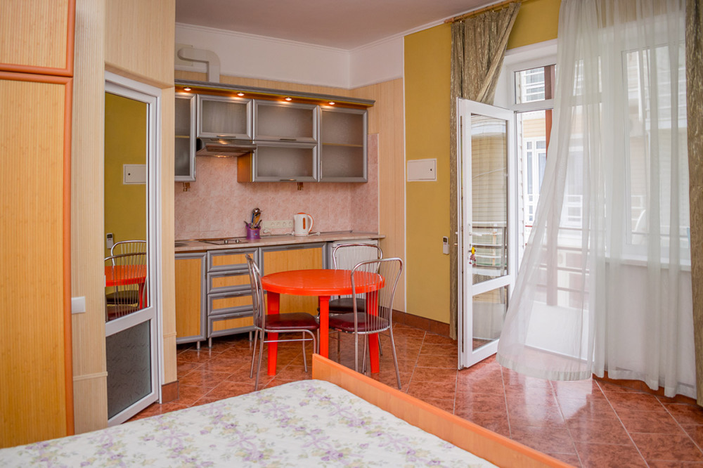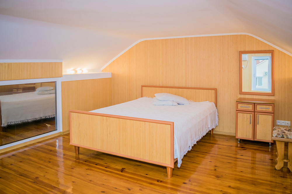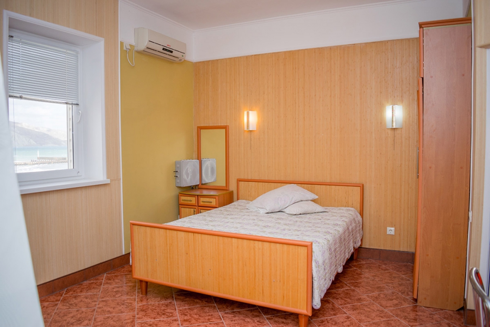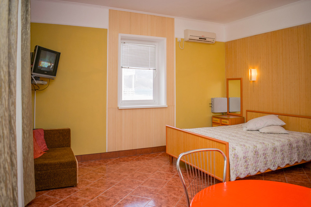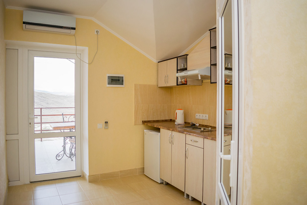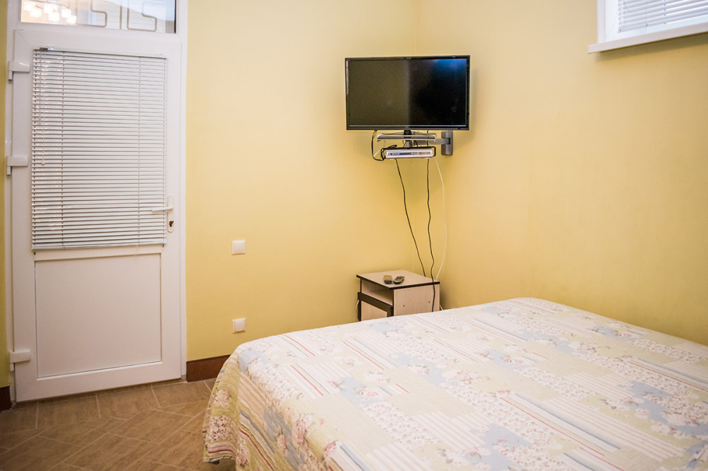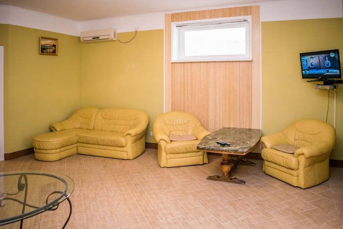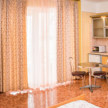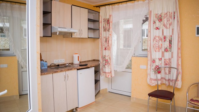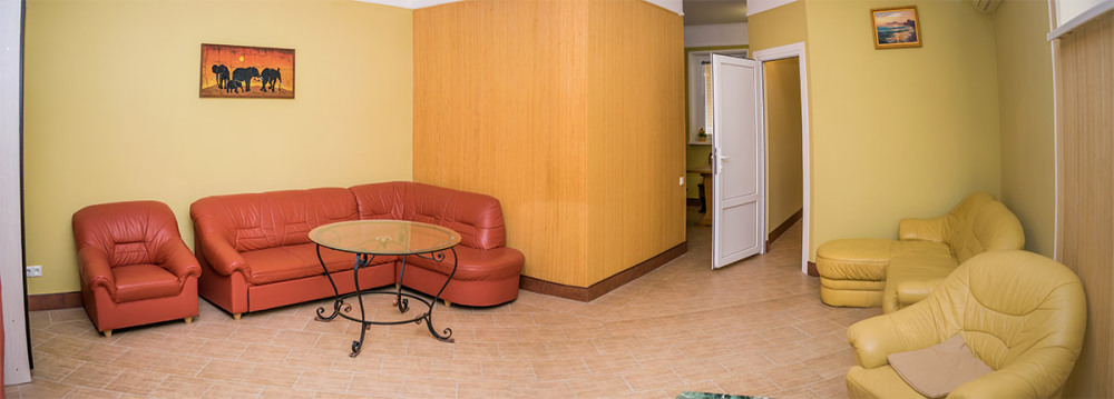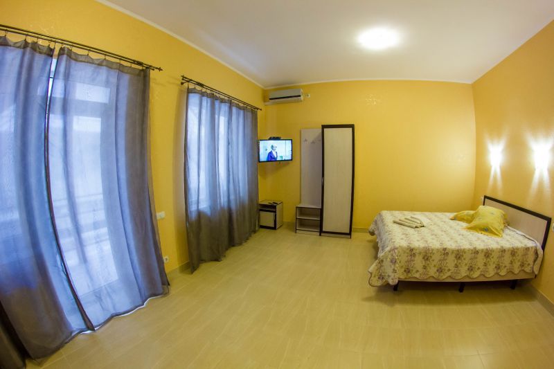 Оснащение: двуспальная кровать 160х200 в каждом номере; прикроватные тумбочки; удобный угловой диван; столики; телевизор; кондиционер; платяной шкаф; кухня (с холодильником, плиткой, электрическим чайником и микроволновой печью); санузел с душем в каждой комнате; отдельный выход из каждой комнаты.