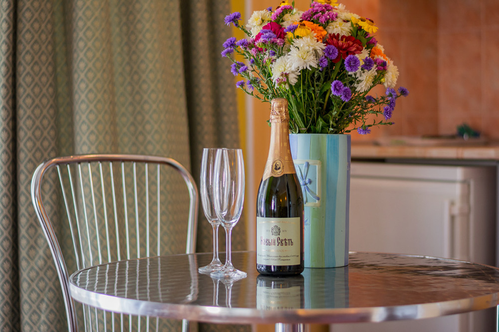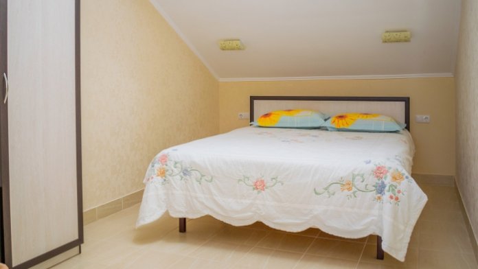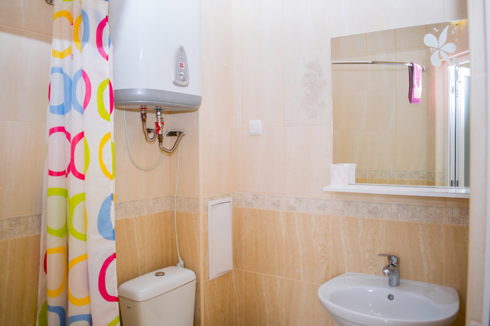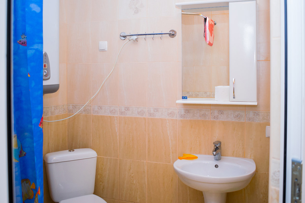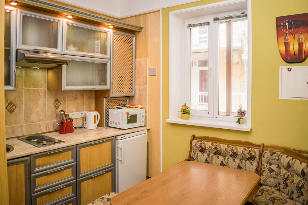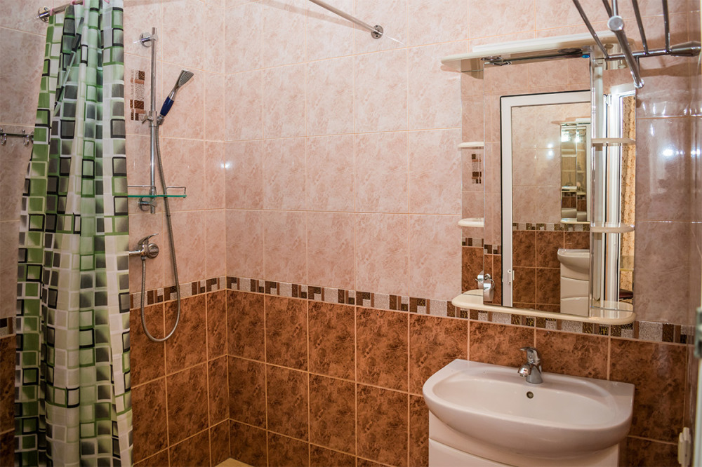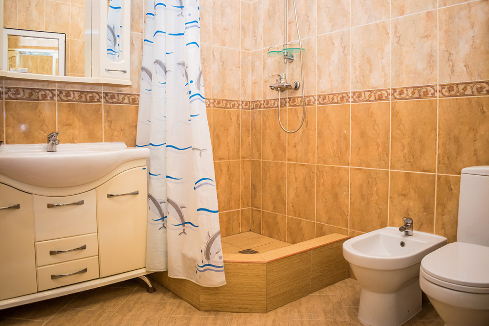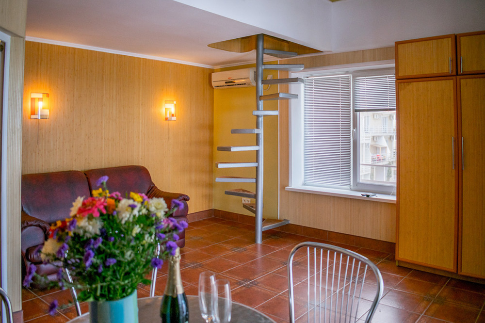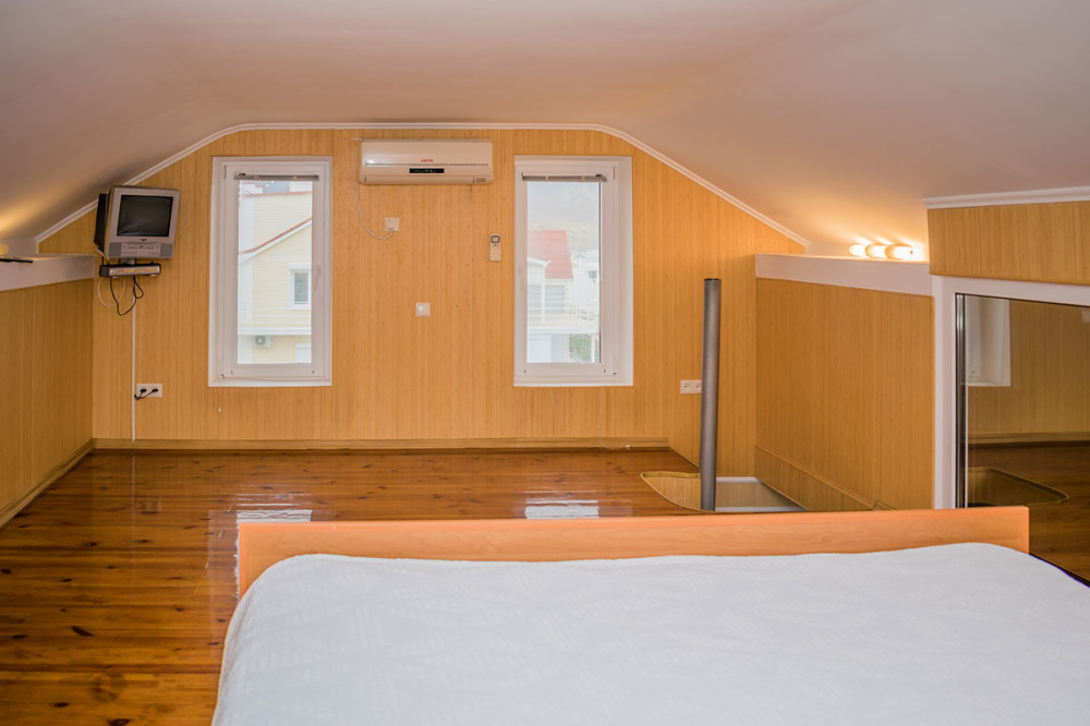 Оснащение: двуспальная кровать 160х200 в каждом номере; прикроватные тумбочки; удобный угловой диван; столики; телевизор; кондиционер; платяной шкаф; кухня (с холодильником, плиткой, электрическим чайником и микроволновой печью); санузел с душем в каждой комнате; отдельный выход из каждой комнаты.