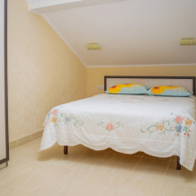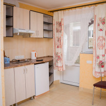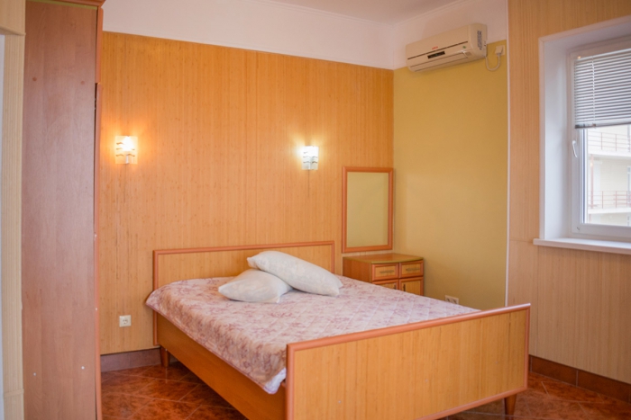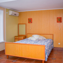 Оснащение: двуспальная кровать 160х200; прикроватная тумбочка; удобный диван; столики; телевизор; кондиционер; платяной шкаф; кухня (с холодильником, плиткой, электрическим чайником и микроволновой печью); санузел с душем; балкон с летней мебелью; отдельный выход из каждой комнаты.