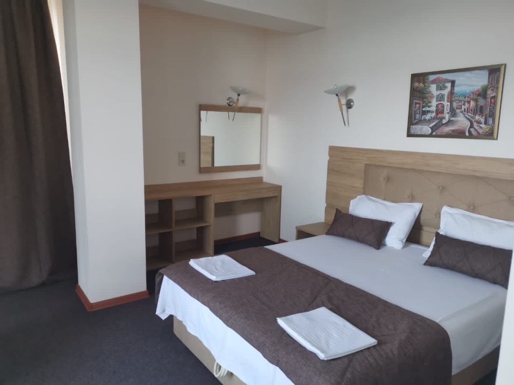 У отеля свой пляж (бетонный), рядом расположен пляж общий галечный (100 метров).