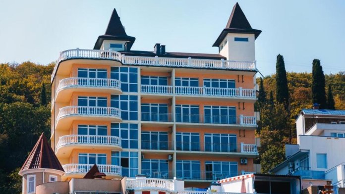 Отель Скала расположился между Алуштой и Ялтой, вблизи мыса Плака, с которого открывается чудеснейший вид на Медведь-гору.