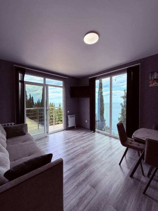 Уютный домик с двумя спальными комнатами, из которого открывается панорамный вид на море