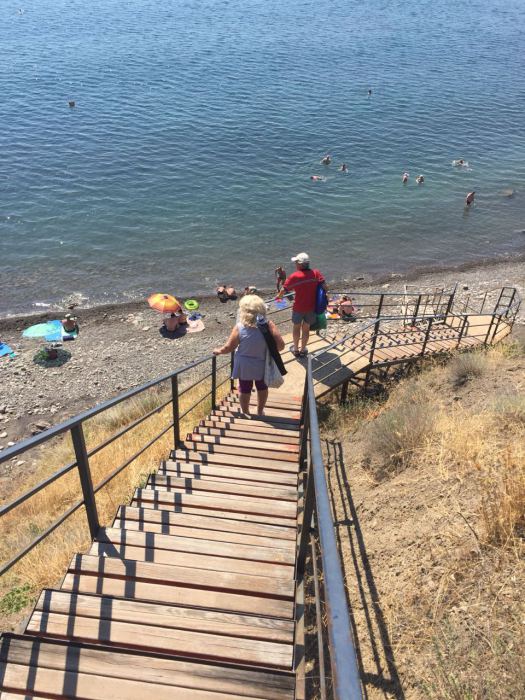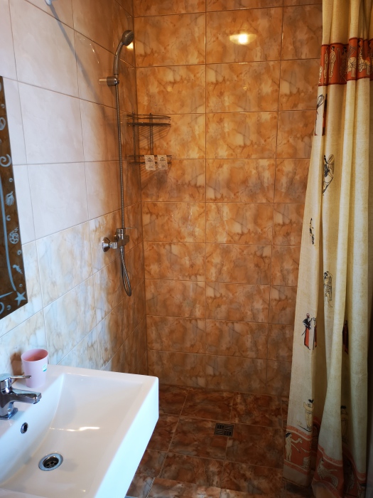 Пляж: 1. Сразу через дорогу от гостевого дома вниз по лестнице, дикий пляж с крупной галькой. Этот пляж подходит не только для купания, но и для дайвинга или рыбалки. 2. Правее от гостевого дома в 10-15-минутах ходьбы вдоль дороги - пляж п. Солнечногорское, мелкогалечный с хорошим спуском и заходом в море. 3. Слева от гостевого дома через Сырную скалу вниз по склону в 15 минутах - пляж п. Малореченское с новой освещаемой набережной, мелкая и крупная галька.