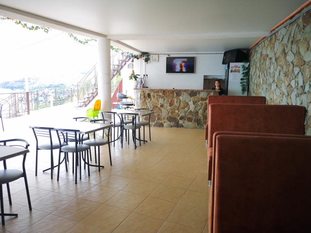 Питание: в кафе на территории гостевого дома - по желанию. Домашняя кухня с трёхразовым комплексным питанием, ориентировочно 850 рублей/сутки на человека. Вечером работает как кафе-бар.