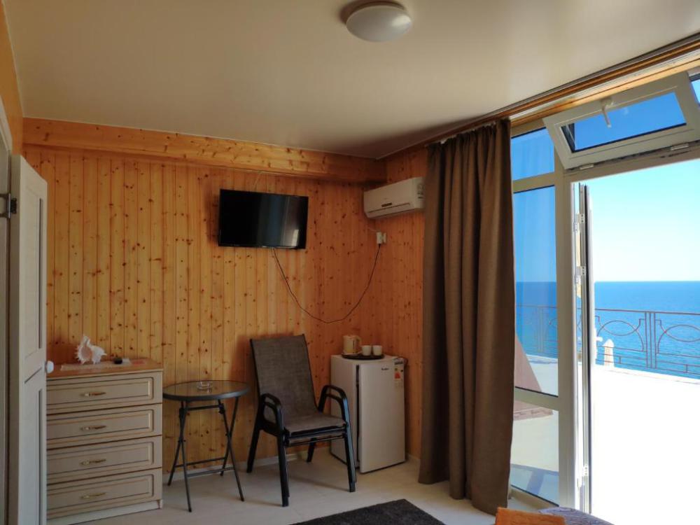 Номерной фонд: соответствует европейским стандартам. Стены - фактурная штукатурка/дерево, пол - ковровое покрытие/кафельная плитка. Двуспальная кровать из натурального дерева (king-size), беспружинный гипоаллергенный матрас, диван раскладной/кресло-кровать, шторы в номерах «Blackout», шкаф-купе (зеркальный), прикроватные тумбочки, раскладной столик и кресла из искусственного ротанга, холодильник, кондиционер, сушилка, санузел с душем, ЖК телевизор. Все номера с террасами и видом на море.