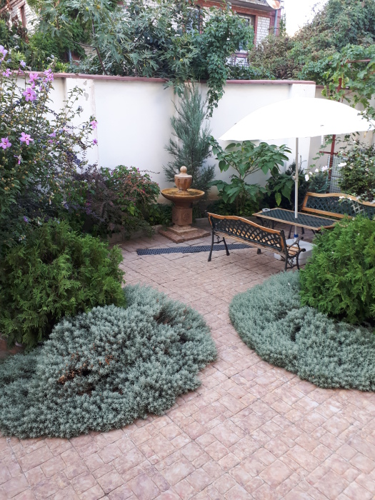 В номере 1 двуспальная кровать или 2 односпальные кровати. В номере есть балкон с садовой мебелью. На окнах москитные сетки.