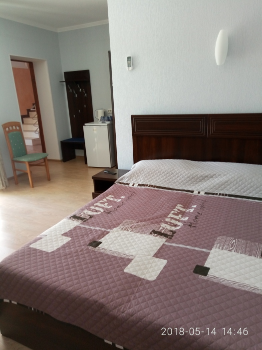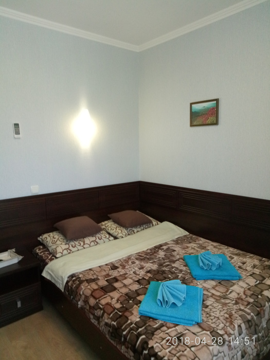 В номере 2х спальная кровать с ортопедическим матрасом. Максимальная вместимость номера 2 человека. В номере есть балкон.